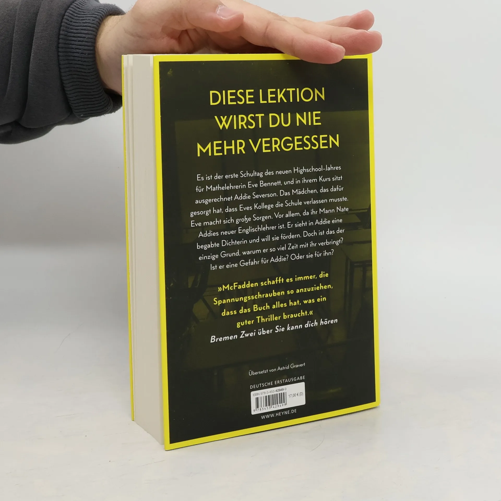 Lektion 1: Sobald du die Schule betrittst, traue niemandem. Mit farbig gestaltetem Buchschnitt – nur in limitierter Erstauflage der gedruckten Ausgabe (Lieferung je nach Verfügbarkeit) Eigentlich hat Eve Bennett ein gutes Leben. Sie ist Mathelehrerin an der örtlichen Highschool und verheiratet mit Nate, der dort Englisch unterrichtet. Doch letztes Jahr wurde die Schule von einem Skandal erschüttert, in dessen Zentrum eine Schülerin stand. Und dieses Jahr ist diese Schülerin in Eves Klasse. Addie kann man nicht trauen, sie lügt und verletzt Menschen. Aber niemand kennt die wahre Addie. Niemand kennt das Geheimnis, das sie zerstören könnte. Und Addie würde alles dafür tun, dass es so bleibt. Ihr einziger Lichtblick in diesem Schuljahr: ihr neuer Englischlehrer Nate Bennett.