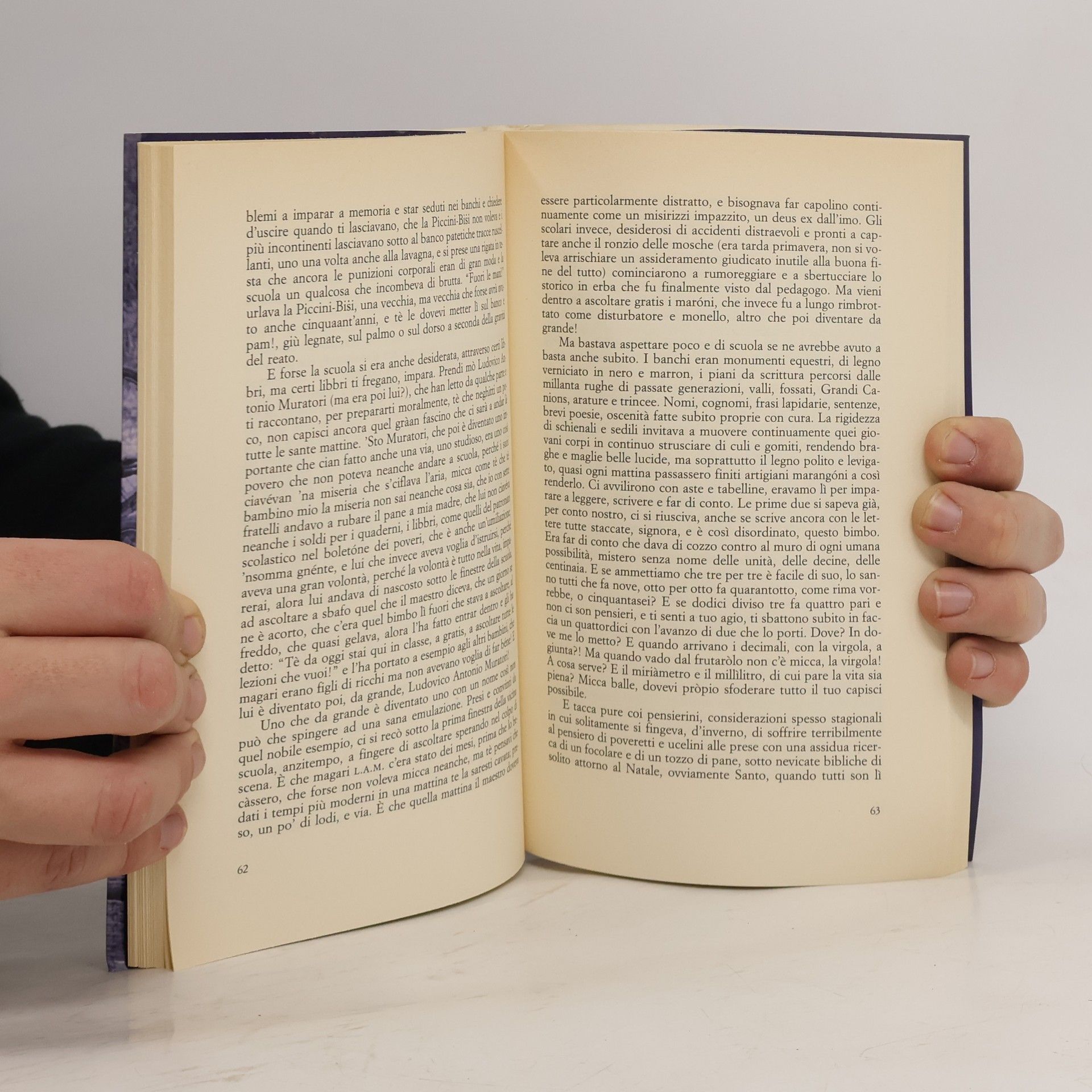 Dalla campagna Francesco si trasferisce in città. Arriva in una stazione sconosciuta e in una casa nuova, dove impara una nuova pronuncia per non essere straniero, perché in città sono tutti signori e i padri d'inverno indossano i cappotti. Il futuro è la nuova periferia. La nebbia, la Padania con i suoi cibi e bevande, zamponi e lambruschi, e poi la scuola con il bidello, le tabelline di Suor Carmelina che porta tutti in chiesa, Coppi e Bartali, i primi balli, i 45 e i 33, il gruppo col quale suonare nelle balere, basso, chitarra e sax. Storie, personaggi e ricordi formano una saga popolare-contadina con un linguaggio assai curioso e sanguigno.