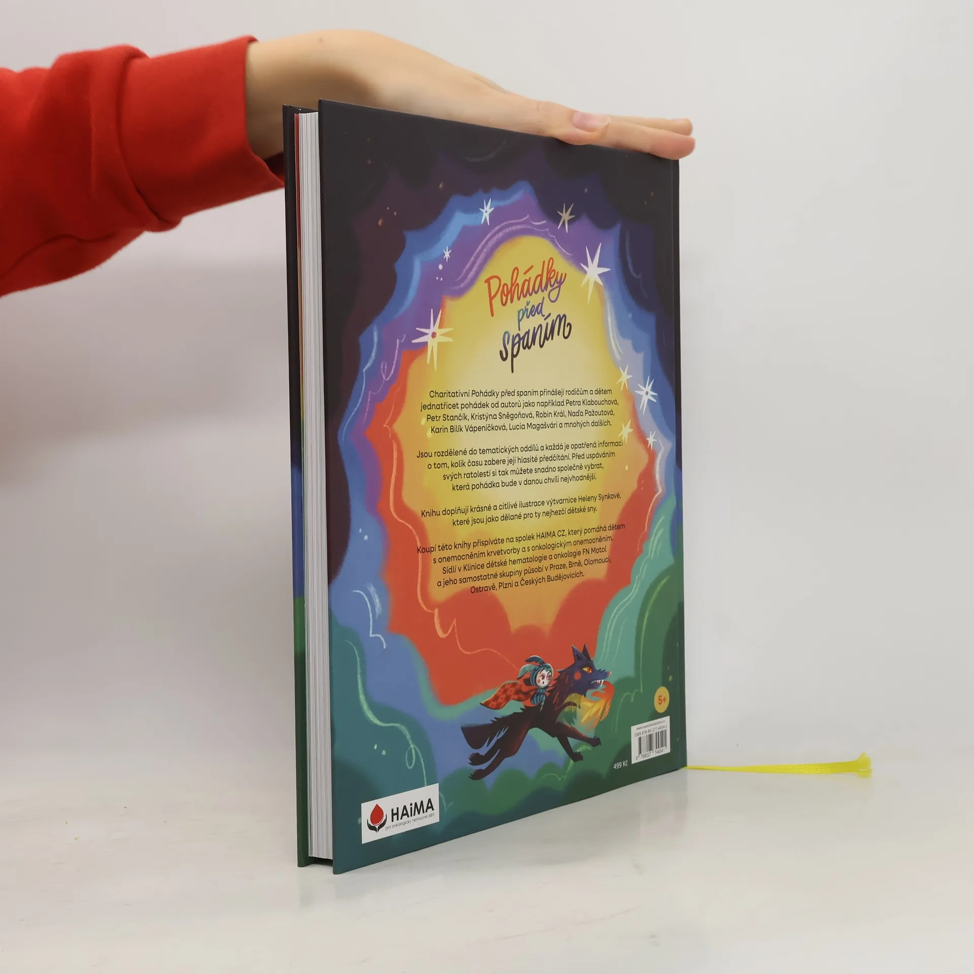 Charitativní Pohádky před spaním přinášejí rodičům a dětem třicet pohádek od autorů jako Petra Klabouchová, Petr Stančík, Kristýna Sněgoňová, Robin Král, Naďa Pažoutová, Karin Bilík Vápeníčková, Lucia Magašvári a mnohých dalších. Jsou rozdělené do tematických oddílů a každá je opatřená informací o tom, jak dlouho zabere její hlasité předčítání. Před uspáváním svých ratolestí si tak můžete snadno společně vybrat, která pohádka bude v danou chvíli nejvhodnější. Knihu doplňují krásné a citlivé ilustrace výtvarnice Heleny Synkové, jako dělané pro ty nejhezčí dětské sny. Koupí této knihy přispíváte na spolek HAIMA CZ, který pomáhá dětem s onemocněním krvetvorby a s onkologickým onemocněním. Sídlí v Klinice dětské hematologie a onkologie FN Motol a jeho samostatné skupiny působí v Praze, Brně, Olomouci, Ostravě, Plzni a Českých Budějovicích. Kompletní seznam autorů: Ludmila Bakonyi Selingerová, Karin Bílík Vápeníčková, Martina Bílková, Miriam & Julie Blahová, Anna Burdová, Marek Dobrý, Dominik Fiala, Pavel Hénik, Pavla Chejnová, Lenka Jakešová, Lada Jankulovská, Andrea Karlovcová, Petra Klabouchová, Jindřiška Kracíková, Robin Král, Kateřina Kressl, Petra Lukešová, Lucia Magašvári, Petra Martišková, Renata Navrátilová, Kateřina Němcová, Naďa Pažoutová, Madla Pospíšilová Karasová, Šárka Przewozná, Naďa Reviláková, Jaromír Slomek, Kristýna Sněgoňová, Vladimíra Staňková, Petr Stančík, Jarmila Vrkočová Sestavila Vladimíra Staňková.