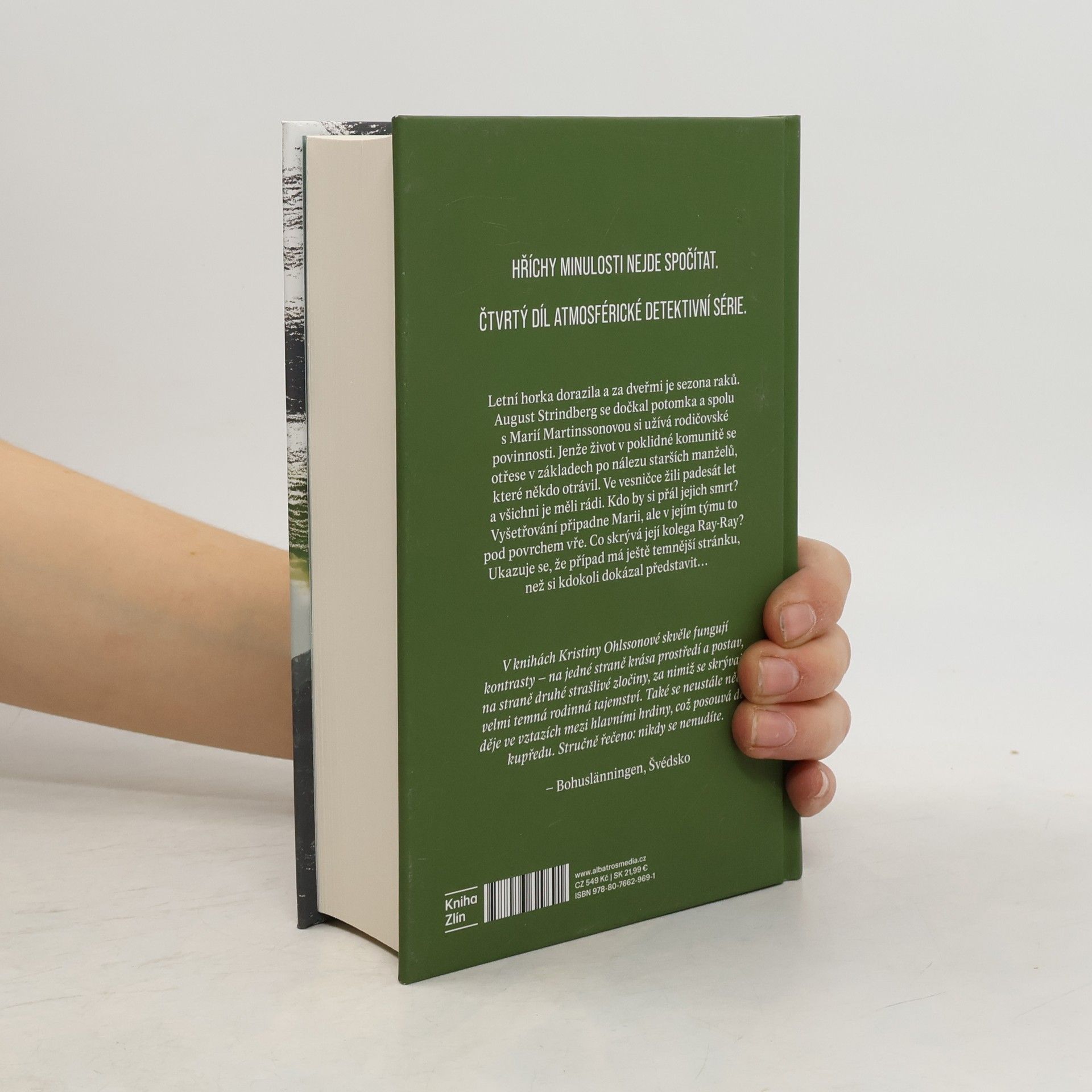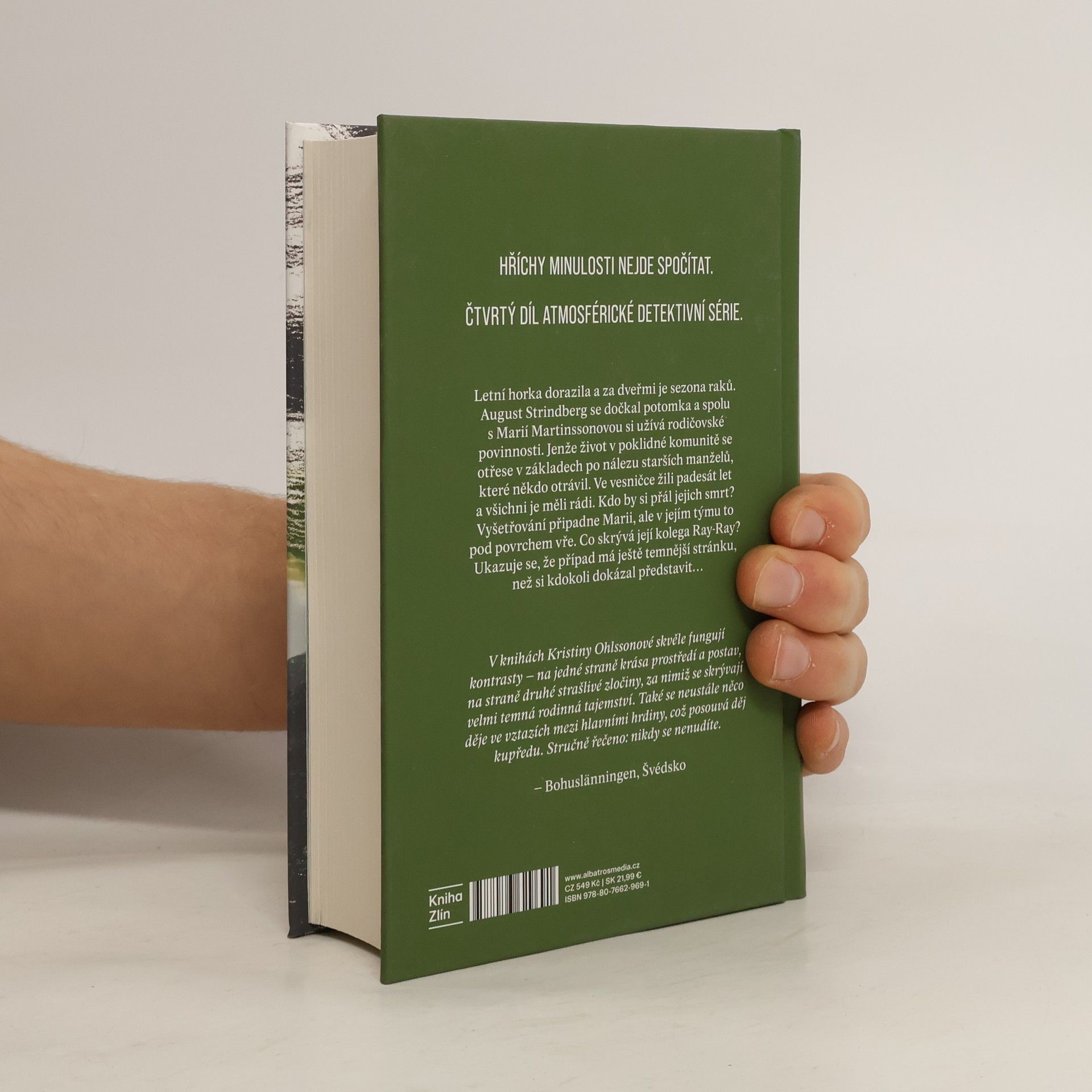 Hříchy minulosti nejde spočítat. Čtvrtý díl atmosférické detektivní série. Letní horka dorazila a za dveřmi je sezóna raků. August Strindberg se dočkal potomka a spolu s Marií Martinssonovou si užívá rodičovské povinnosti. Jenže život v poklidné komunitě se otřese v základech po nálezu starších manželů, které někdo otrávil. Ve vesničce žili padesát let a všichni je měli rádi. Kdo by si přál jejich smrt? Vyšetřování připadne Marii, ale v jejím týmu to pod povrchem vře. Co skrývá její kolega Ray-Ray? Ukazuje se, že případ má ještě temnější stránku, než si kdokoli dokázal představit…