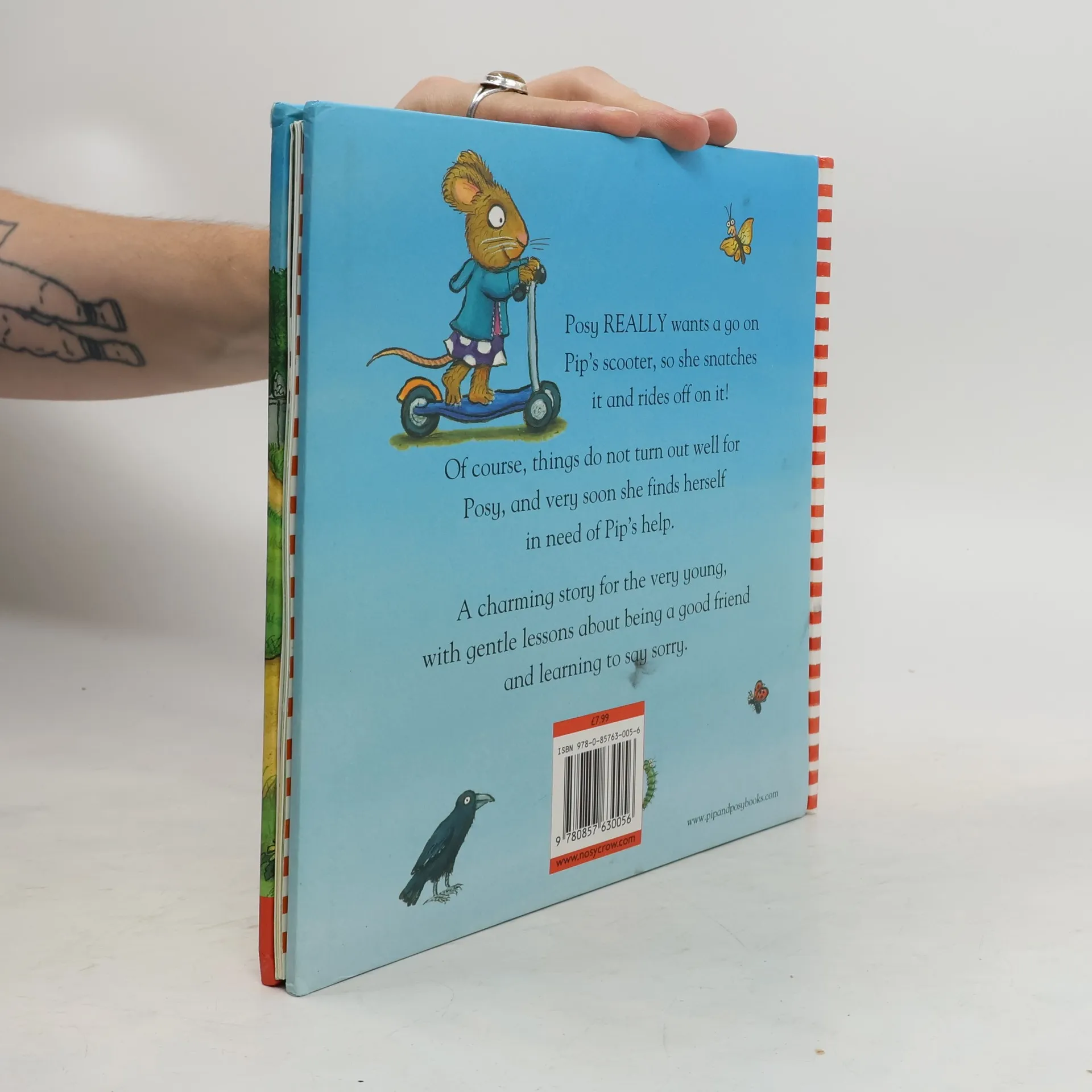 Posy REALLY wants to go on Pip's scooter, so she snatches it and rides off on it! Of course, things do not turn out well for Posy, and very soon she finds herself in need of Pip's help. A charming story for the very young, with gentle lessons about being a good friend and learning to say sorry.