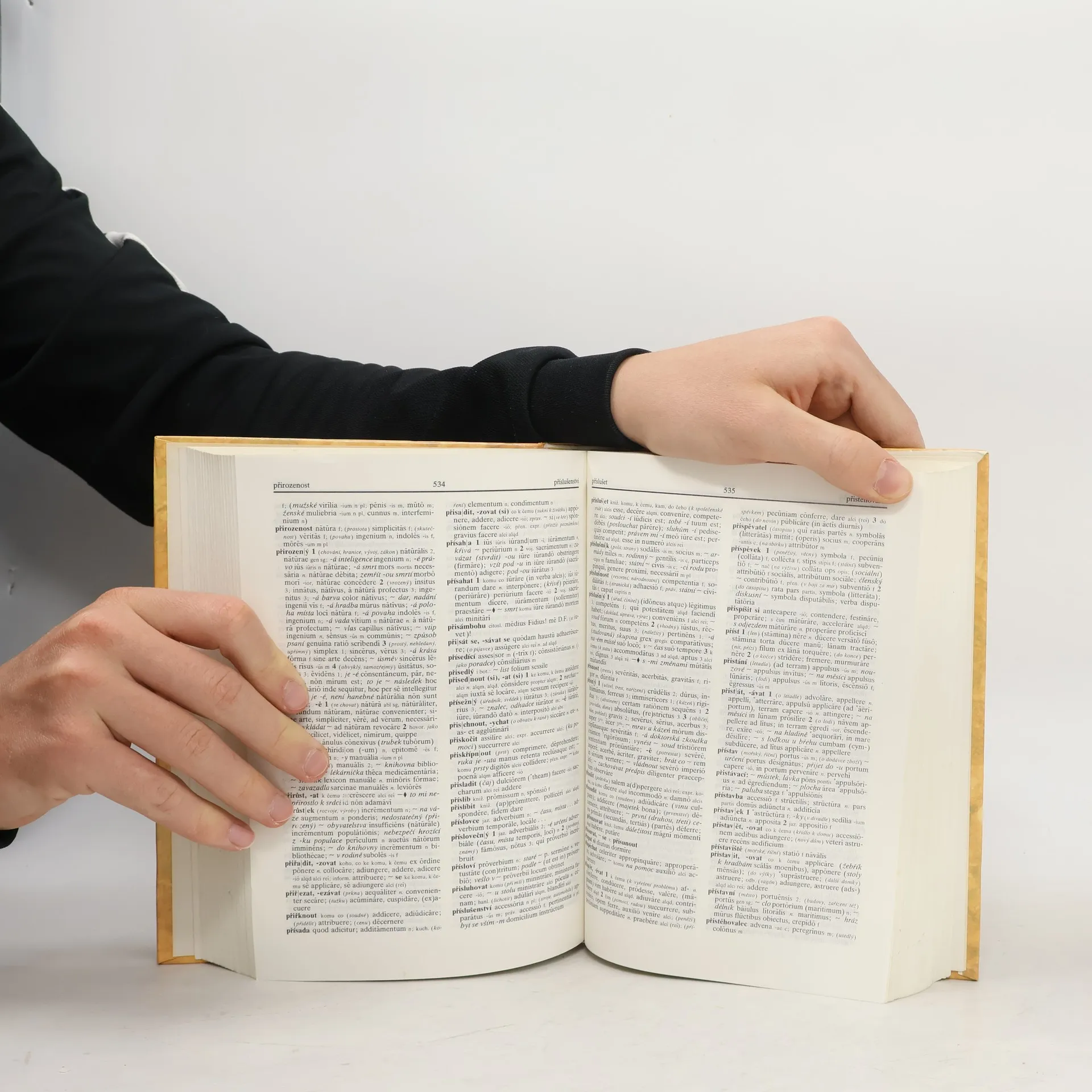Starověká a současná latina. Předmluva a ostatní text ve slovníku je vždy v češtině a následně i v latině.