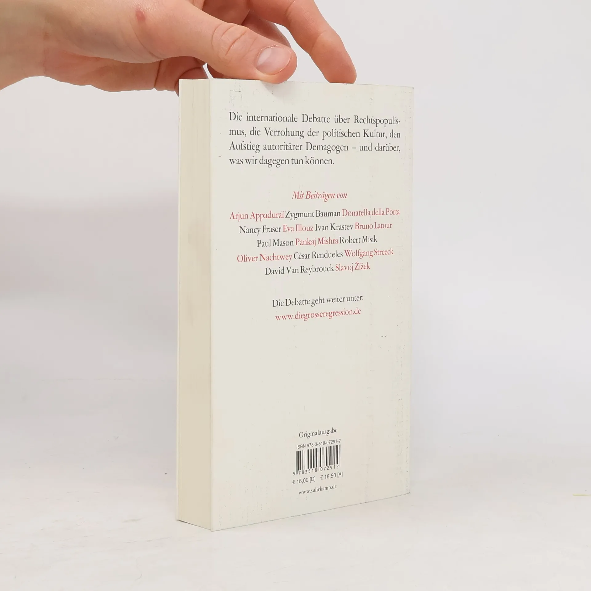 Spätestens seit sich die Folgen der Finanzkrise abzeichnen und die Migration in die Europäische Union zunimmt, sehen wir uns mit Entwicklungen konfrontiert, die viele für Phänomene einer längst vergangenen Epoche hielten: dem Aufstieg nationalistischer, teils antiliberaler Parteien wie dem Front National und der AfD, einer tiefgreifenden Krise der EU, einer Verrohung des öffentlichen Diskurses durch Demagogen wie Donald Trump, wachsendem Misstrauen gegenüber den etablierten Medien und einer Verbreitung fremdenfeindlicher Einstellungen, die an dunkle Zeiten gemahnt. Politiker werden als »Vaterlandsverräter« verunglimpft, Muslime unter Generalverdacht gestellt, im Internet werden die krudesten Verschwörungstheorien propagiert. In diesem Band untersuchen international renommierte Forscher und Intellektuelle die Ursachen dieser »Großen Regression«, verorten sie in einem historischen Kontext, erörtern Szenarien für die nächsten Jahre und diskutieren Strategien, mit denen wir diesen Entwicklungen entgegentreten können. Mit Beiträgen von Arjun Appadurai, Zygmunt Bauman, Donatella della Porta, Nancy Fraser, Eva Illouz, Ivan Krastev, Bruno Latour, Paul Mason, Pankaj Mishra, Robert Misik, Oliver Nachtwey, César Rendueles, Wolfgang Streeck, David Van Reybrouck, Slavoj Žižek.