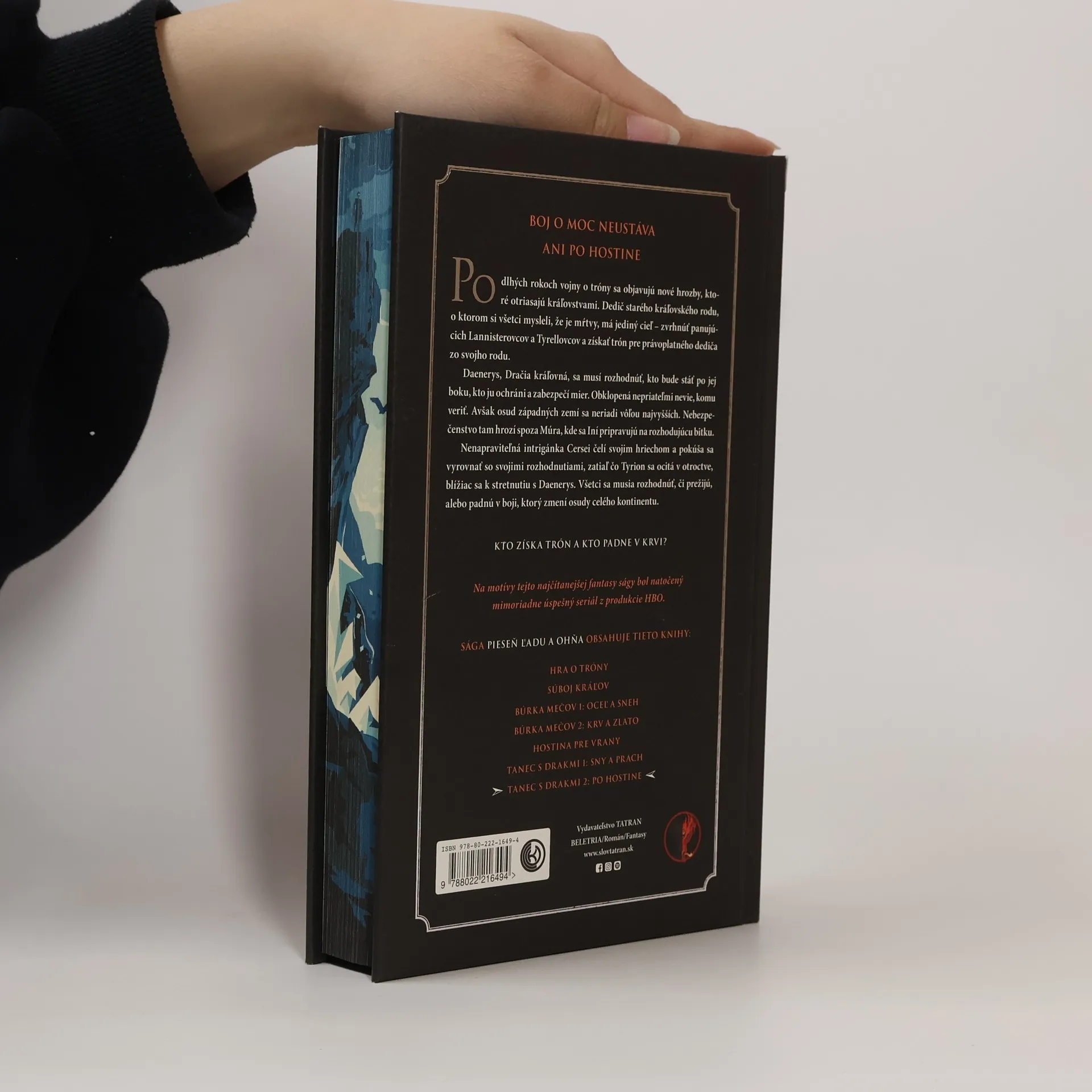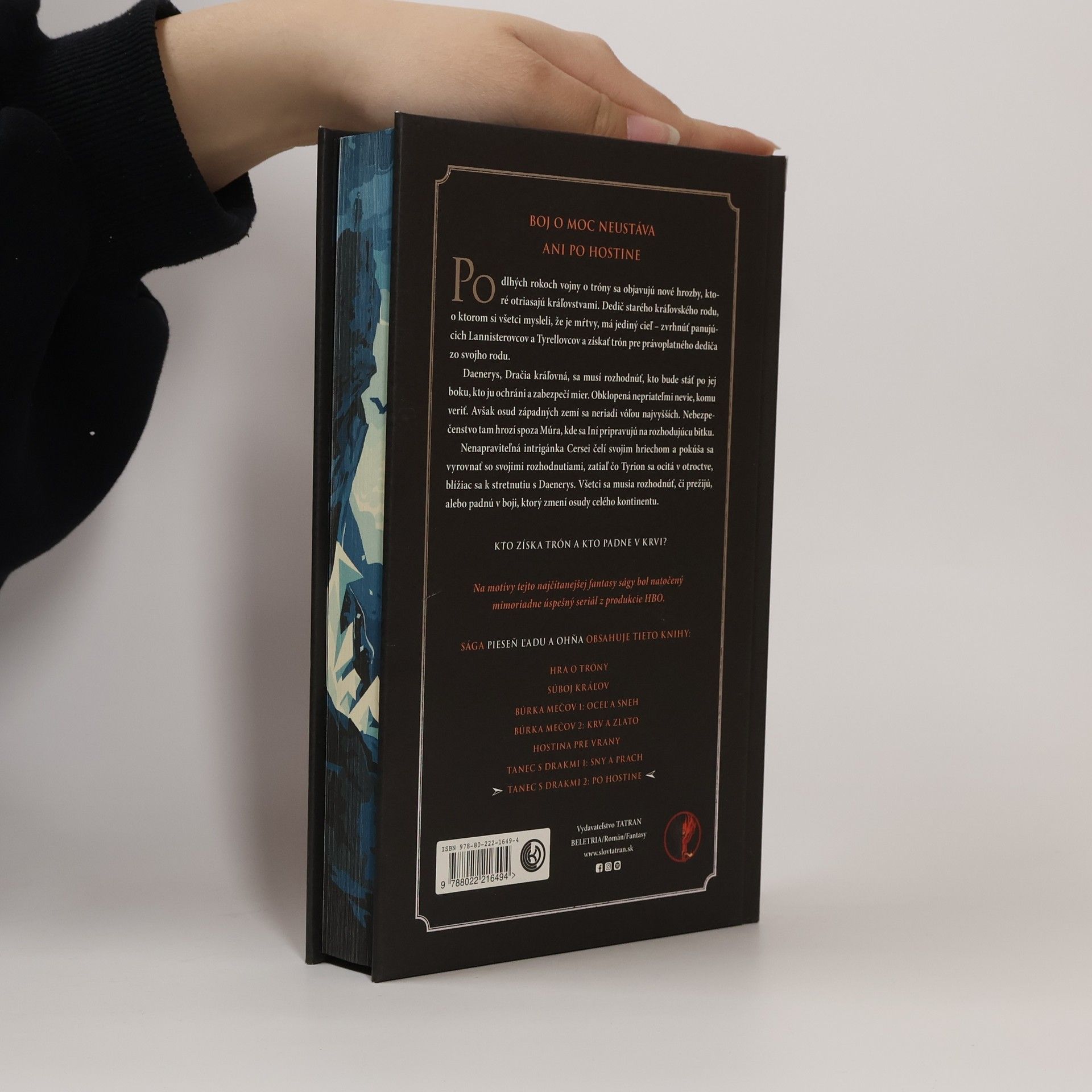 BOJ O MOC NEUSTÁVA ANI PO HOSTINE Po dlhých rokoch vojny o tróny sa objavujú nové hrozby, ktoré otriasajú kráľovstvami. Dedič starého kráľovského rodu, o ktorom si všetci mysleli, že je mŕtvy, má jediný cieľ – zvrhnúť panujúcich Lannisterovcov a Tyrellovcov a získať trón pre právoplatného dediča zo svojho rodu. Daenerys, Dračia kráľovná, sa musí rozhodnúť, kto bude stáť po jej boku, kto ju ochráni a zabezpečí mier. Obklopená nepriateľmi nevie, komu veriť. Avšak osud západných zemí sa neriadi vôľou najvyšších. Nebezpečenstvo tam hrozí spoza Múra, kde sa Iní pripravujú na rozhodujúcu bitku. Nenapraviteľná intrigánka Cersei čelí svojim hriechom a pokúša sa vyrovnať so svojimi rozhodnutiami, zatiaľ čo Tyrion sa ocitá v otroctve, blížiac sa k stretnutiu s Daenerys. Všetci sa musia rozhodnúť, či prežijú, alebo padnú v boji, ktorý zmení osudy celého kontinentu. KTO ZÍSKA TRÓN A KTO PADNE V KRVI?