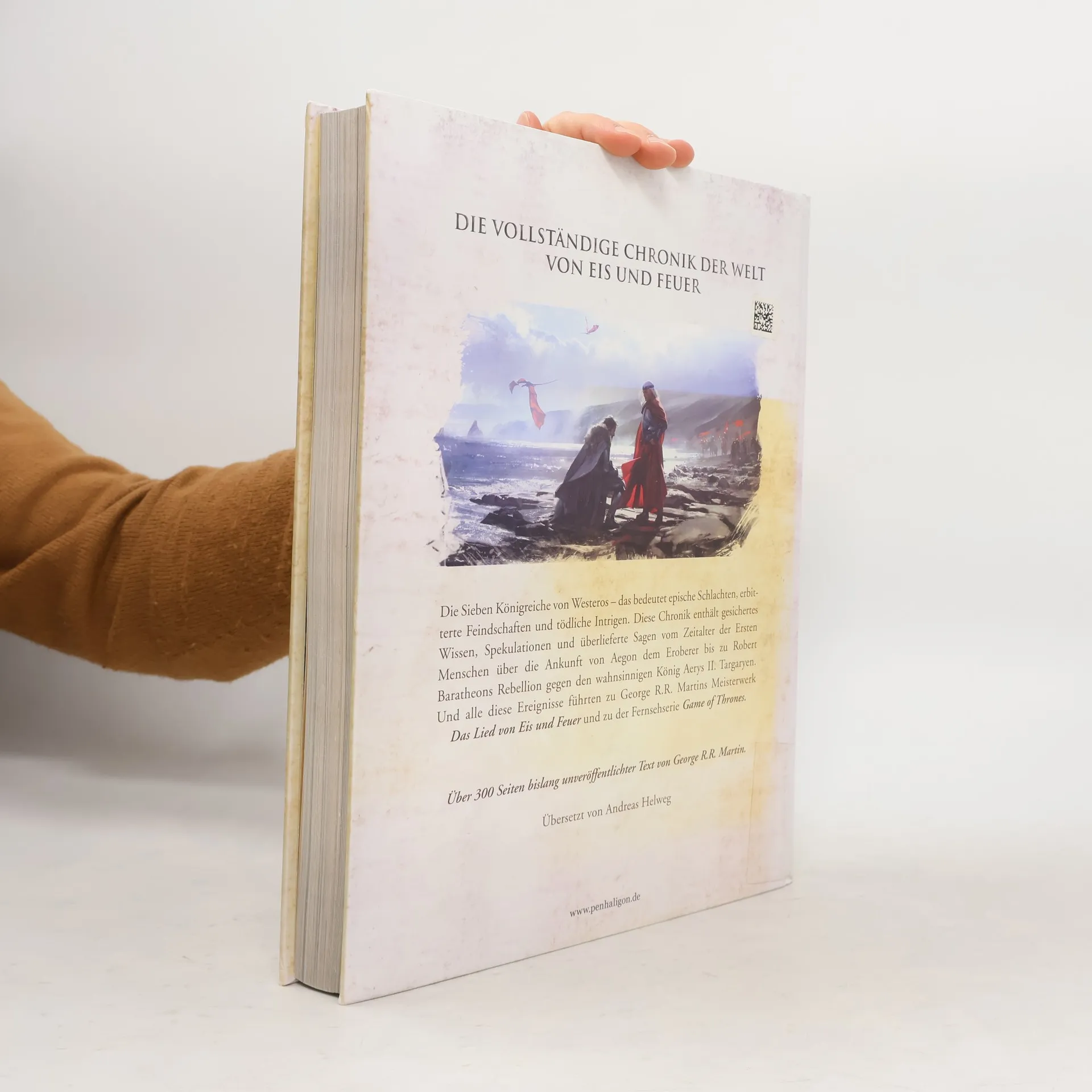 Um eine fantastische Welt lebendig erscheinen zu lassen, benötigt sie eine Vergangenheit. Daher erschuf Bestsellerautor George R.R. Martin den fiktiven Kontinent Westeros, auf dem sein Meisterwerk Das Lied von Eis und Feuer / Game of Thrones spielt, in jahrelanger Detailarbeit. Dieser prachtvoll ausgestattete Bildband präsentiert erstmals die Geschichte von Westeros – beginnend in der Zeit, in der die ersten Menschen den Kontinent betraten, über die Ankunft von Aegon dem Eroberer und seinen Drachen bis zu Robert Baratheons Rebellion gegen den wahnsinnigen König Aerys II. Targaryen. Damit ist WESTEROS – Die Welt von Eis und Feuer der wahre Prolog der erfolgreichsten Fantasyserie unserer Zeit.