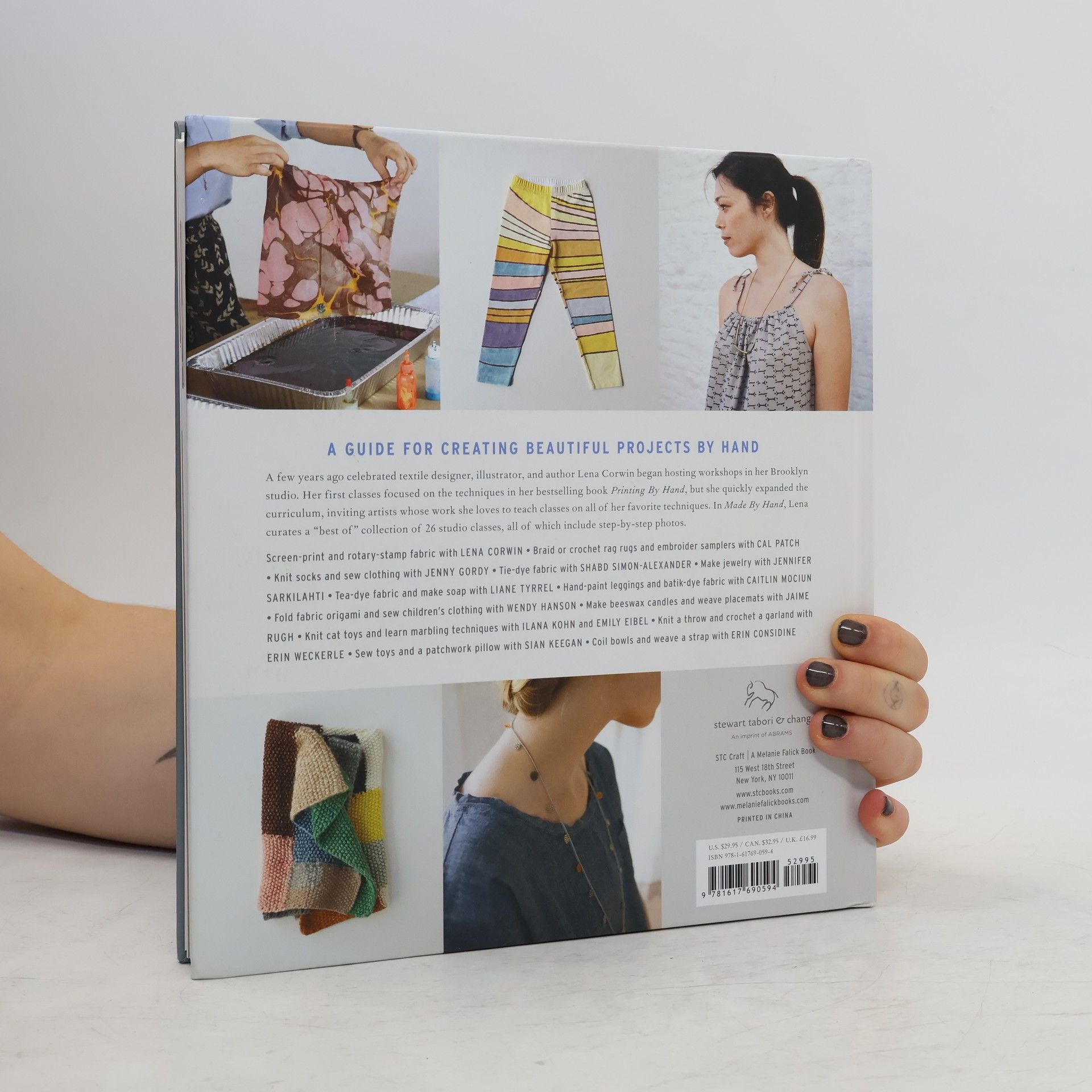 In 2009, tastemaker and bestselling author Lena Corwin turned the top floor of her Brooklyn brownstone into a studio and began hosting classes for local crafters. In Lena Corwin’s Made by Hand, she re-creates and builds upon her popular workshop series in order to reach crafters in Brooklyn and beyond. For this “best of” collection, she has chosen expert teachers and her favorite projects: Jenny Gordy introduces us to knitted socks and elegantly sewn tops and dresses; Cal Patch teaches how to make a modern embroidery sampler as well as a braided rag rug; and Corwin herself presents her favorite screen-printing and stamping techniques. In total, there are 26 lessons/projects, all presented with step-by-step photos and illustrations. Praise for Lena Corwin's Made By Hand: “Decorate with coffee table books. A few Glamour picks: Lena Corwin’s Made by Hand . . .” —Glamour Magazine “A must-have for anyone who wants to create unique décor.” —Decorating Shortcuts magazine “Made By Hand offers the perfect range of usable textile handiwork, presented by fourteen teachers who obviously enjoy their craft —ForeWord Reviews “The 385 detailed illustrations, along with excellent step-by-step photographs and clear instructions, make each project tempting and approachable.” —Studios magazine “Those messy hands alone are inspiring me to get creative.” —Modern Eve “I got a sneak peek at a mostly lovely book. I can’t contain my excitement over this book. The projects are varied and so much fun.” —The Stylish Nest “The photography and layout of the book is gorgeous: wide open with lots of white space, reminiscent of Japanese craft books. And there are people, whole people, sitting and doing crafts, not just disembodied hands. Isn’t that part of the reason we craft—for the human contact?” —Knitty.com “Made By Hand offers the perfect range of usable textile handiwork, presented by fourteen teachers who obviously enjoy their craft.” —ForeWord Reviews “Made By Hand is gorgeous . . . filled to the brim with beautifully executed diy tutorials from a host of talented artisans.” —Michelle S Blog
