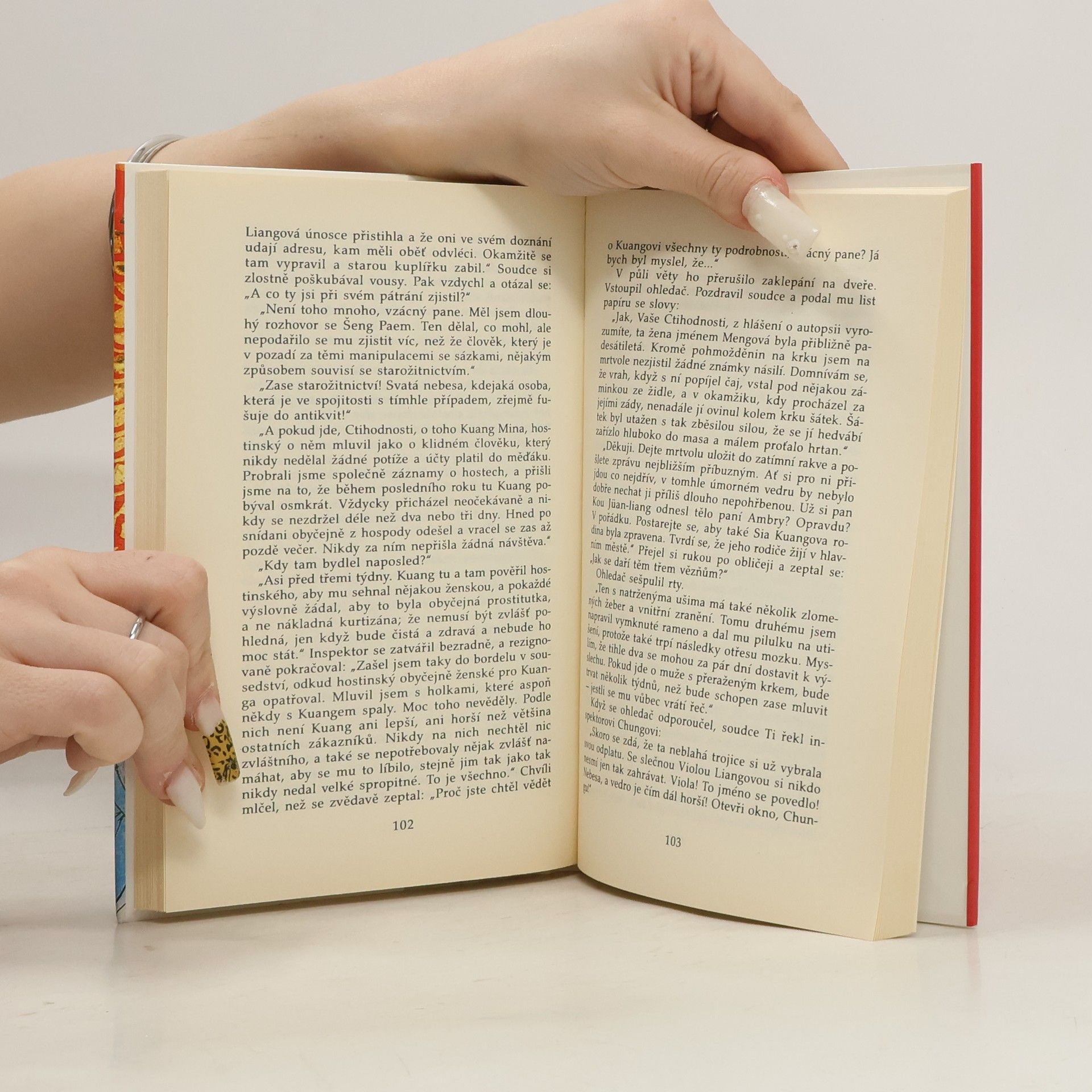Autorem detektivního románu z čínského prostředí je proslulý autor anglických detektivek, diplomat a vynikající znalec staré čínské literatury, umění a kultury (nar. 1910 v Holandsku). Příběh na pozadí působivě vylíčeného prostředí a krutých zvyku náboženského kultu objasňuje sérii vražd, které provázejí úsilí získat ztracený císařský klenot, obrovskou perlu, která se kdysi záhadně ztratila z císařskéno palace a po stu letech se objevuje na trhu překupníků.