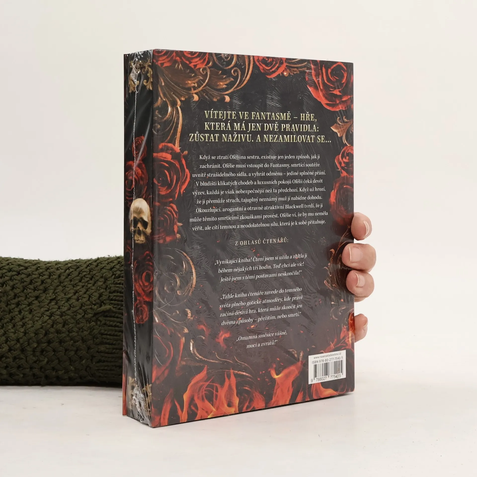 Když Ofélii a Genevieve náhle zemře matka, nemají ani čas truchlit. Ofélie totiž zdědila nejen mocnou nekromantskou magii, ale také obrovský dluh na jejich domě. Situace se však brzy ještě zhorší, protože Genevieve se rozhodne úvěr splatit tím, že vstoupí do Fantasmy – soutěže, kterou většina soutěžících nepřežije, ale vítězi se splní jedno přání. Aby mohla Ofélie sestru zachránit, musí se hry sama zúčastnit. Fantasma je však prokletým sídlem plným klikatých chodeb a honosných pokojů, v nichž číhají svůdní démoni a hříšná pokušení. Ofélie musí překonat celých devět úrovní zkoušek, aby zvítězila…, pokud ji tedy dřív nepřemůže vlastní strach. Když jí arogantní neznámý muž nabídne, že by ji mohl ochránit a vést, Ofélie ví, že by mu neměla věřit. Blackwell totiž možná nevypadá nebezpečně, ale zdání může klamat. Jenže v sázce je život její sestry, a tak si nemůže dovolit ho odmítnout. Důležité je, aby ignorovala neodolatelnou temnou přitažlivost, která je k sobě neustále táhne. Ztráta vlastního srdce je totiž ve Fantasmě nebezpečnější než prohra. Limitovaná edice populární knihy Fantasma. Jako první kniha v České republice vychází s exkluzivní 3D ořízkou, a to v nákladu pouhých 300 kusů.