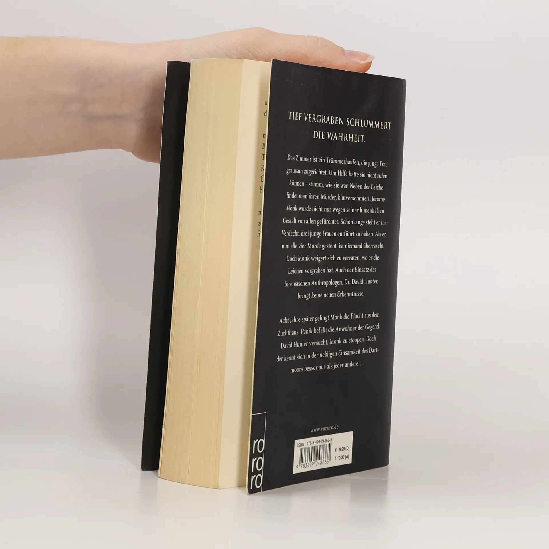 Tief vergraben schlummert die Wahrheit. Das Zimmer ist ein Trümmerhaufen, die junge Frau grausam zugerichtet. Neben der Leiche findet man den Mörder, blutverschmiert: Schon lange steht Jerome Monk im Verdacht, drei junge Frauen getötet zu haben. Als er nun alle vier Morde gesteht, ist niemand überrascht. Doch Monk weigert sich zu verraten, wo er die Leichen vergraben hat. Auch der Einsatz des forensischen Anthropologen, Dr. David Hunter, bringt keine neuen Erkenntnisse. Acht Jahre später gelingt Monk die Flucht aus dem Zuchthaus. Panik befällt die Anwohner der Gegend. David Hunter versucht, Monk zu stoppen. Doch der kennt sich in der nebligen Einsamkeit des Dartmoor besser aus als jeder andere ...