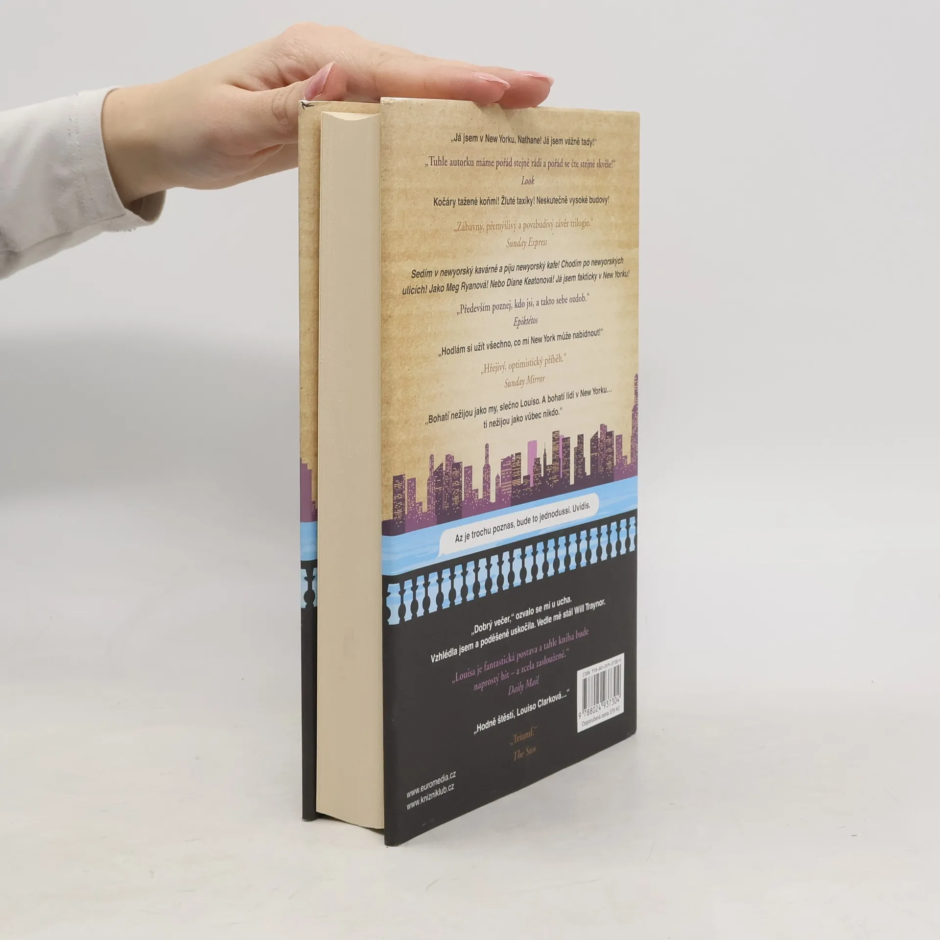 Louisa Clarková z bestellerů Než jsem tě poznala a Život po tobě se vrací v novém románu Jojo Moyesové! A hodně toho ví… Tak například ví, jak daleko je z jejího nového domova v New Yorku do Londýna, kde žije její přítel Sam. Ví také, že její nový zaměstnavatel je dobrý člověk a že před ním jeho manželka skrývá tajemství. Co ovšem Louisa ještě netuší, je to, že nová práce v novém městě jí rozhodně nezaručí idylický život, ve který tolik doufala, a že bude její vztah se Samem z obou stran podroben zkoušce ohněm. A neví také, že lidé, s nimiž se ve své nové životní etapě setká, ji možná postrčí dost nečekaným směrem…