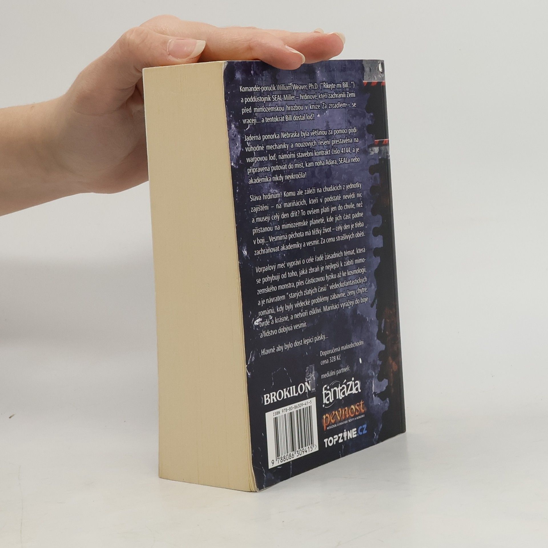 Komandér-poručík William Weaver, PhD. („Říkejte mi Bill…„) a poddůstojník SEAL Miller – hrdinové, kteří zachránili Zemi před mimozemskou hrozbou v knize Za zrcadlem – se vracejí… a tentokrát Bill dostal loď! Jaderná ponorka Nebraska byla většinou za pomoci podivuhodné mechaniky a nouzových řešení přestavěna na warpovou loď, námořní stavební kontrakt číslo 4144, a je připravena putovat do míst, kam noha Adara, SEALa nebo akademika nikdy nevkročila! Sláva hrdinům! Komu ale záleží na chudácích z jednotky zajištění – na mariňácích, kteří v podstatě nevědí nic a musejí celý den dřít? To ovšem platí jen do chvíle, kdy přistanou na mimozemské planetě, kde jich část padne v boji… Vesmírná pěchota má těžký život – celý den je třeba zachraňovat akademiky a vesmír. Za cenu strašlivých obětí. Vorpalový meč hovoří o celé řadě zásadních témat, která se pohybují od toho, jaká zbraň je nejlepší k zabití mimozemského monstra, přes částicovou fyziku až ke kosmologii, a je návratem „starých zlatých časů“ vědeckofantastických románů, kdy byly vědecké problémy zábavné, ženy chytré, tvrdé a krásné, a netvoři oškliví. Mariňáci vyrážejí do boje a lidstvo dobývá vesmír. Hlavně aby bylo dost lepicí pásky…