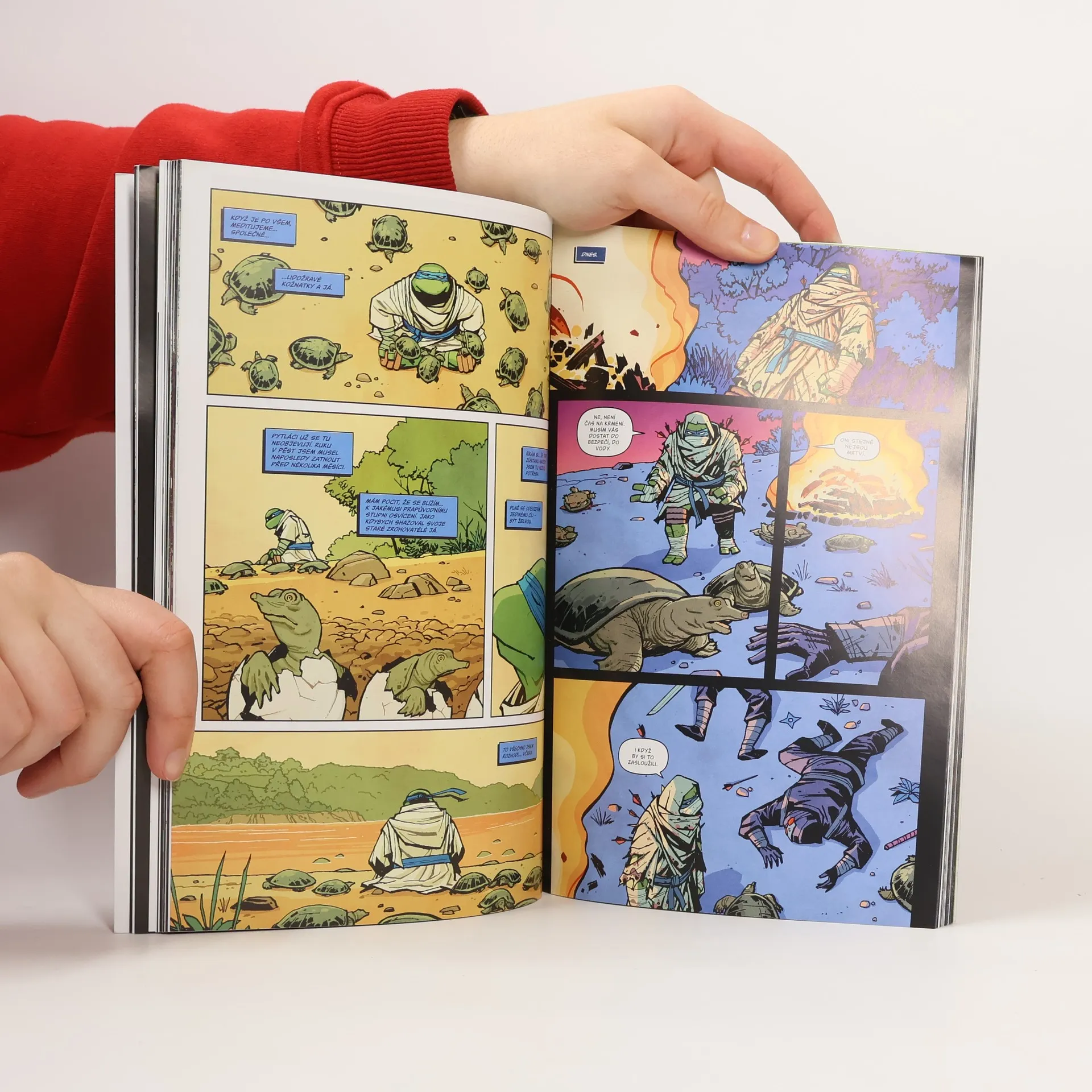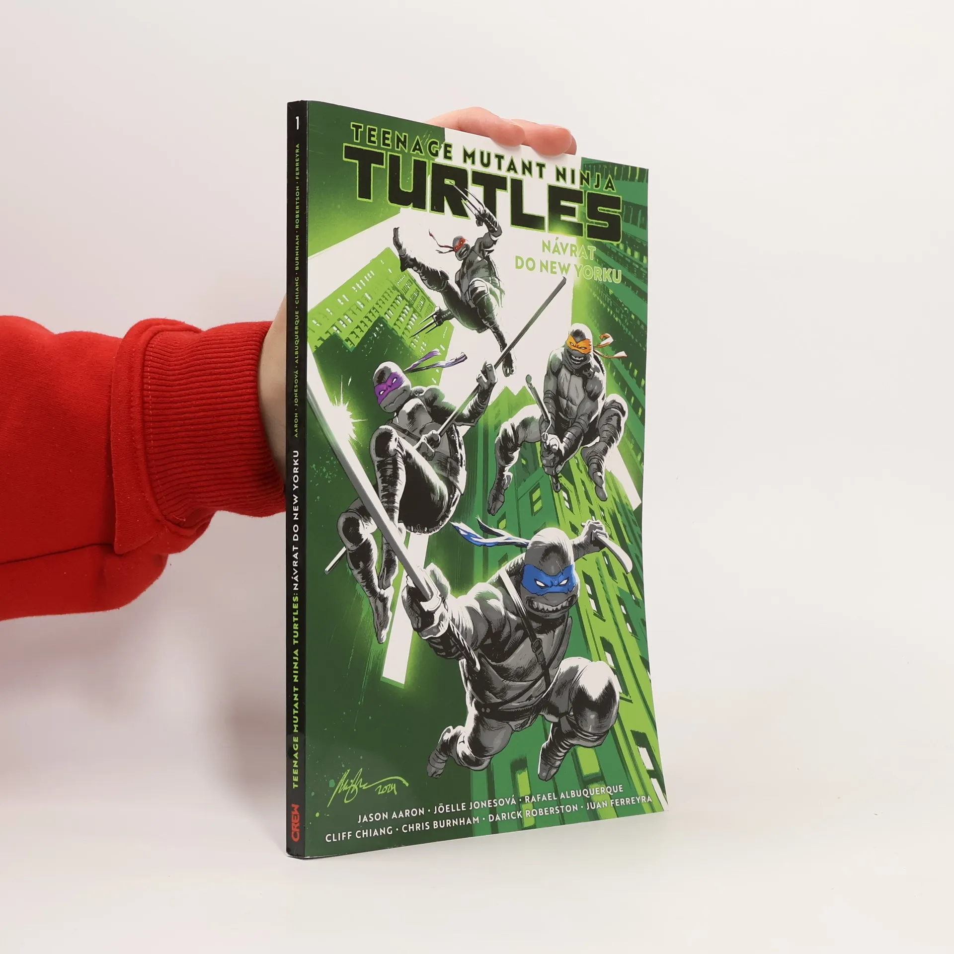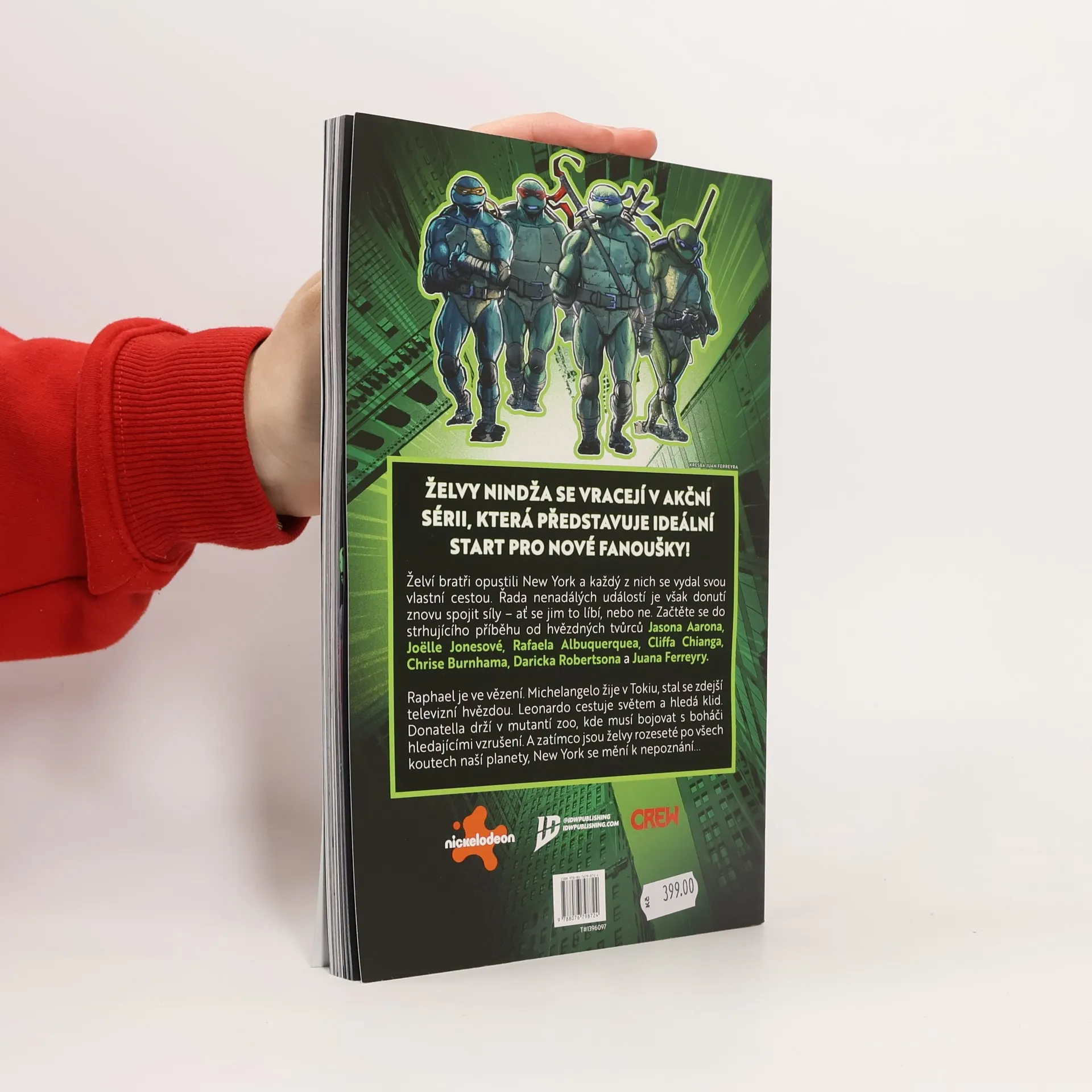 Želvy nindža se vracejí v akční sérii, která představuje ideální start pro nové fanoušky! Želví bratři opustili New York a každý z nich se vydal svou vlastní cestou. Řada nenadálých událostí je však donutí znovu spojit síly – ať se jim to líbí, nebo ne. Začtěte se do strhujícího příběhu od hvězdných tvůrců Jasona Aarona, Joëlle Jonesové, Rafaela Albuquerquea, Cliffa Chianga, Chrise Burnhama, Daricka Robertsona a Juana Ferreyry. Raphael je ve vězení. Michelangelo žije v Tokiu, stal se zdejší televizní hvězdou. Leonardo cestuje světem a hledá klid. Donatela drží v mutantí zoo, kde musí bojovat s boháči hledajícími vzrušení. A zatímco jsou želvy rozeseté po všech koutech naší planety, New York se mění k nepoznání...