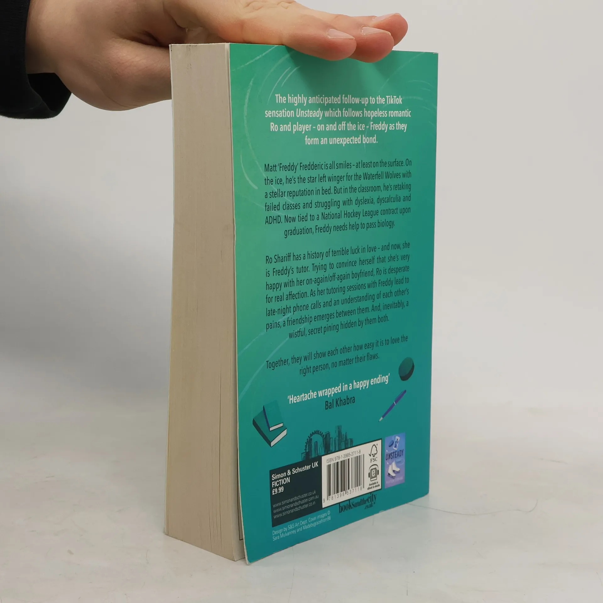 The highly anticipated follow-up to the TikTok sensation Unsteady which follows hopeless romantic Ro and player - on and off the ice - Freddy as they form an unexpected bond. Matt "Freddy" Fredderic is all smiles - at least on the surface. On the ice, he's the star left winger for the Waterfell Wolves with a stellar reputation in bed. But in the classroom, he's retaking failed classes and struggling with dyslexia, dyscalculia, and ADHD. Now tied to a National Hockey League contract upon graduation, Freddy needs help to pass biology. Ro Shariff has a history of terrible luck in love - and now, she is Freddy's tutor. Trying to convince herself that she's very happy with her on again/off again boyfriend, Ro is desperate for real affection. As her tutoring sessions with Freddy lead to late-night phone calls and an understanding of each other's pains, a friendship emerges between them. And, inevitably, a wistful secret pining hidden by them both. Together, they will show each other how easy it is to love the right person, no matter their flaws.