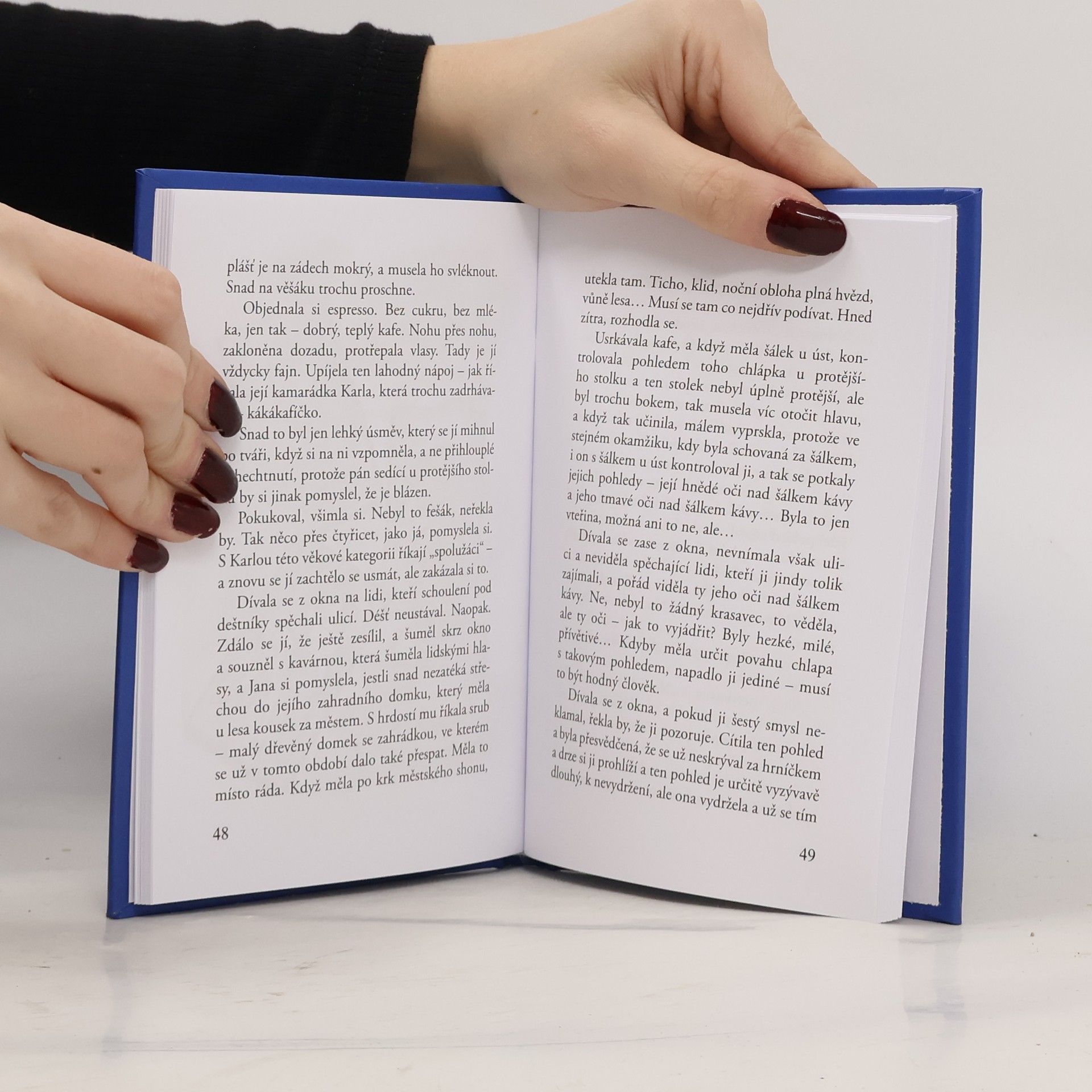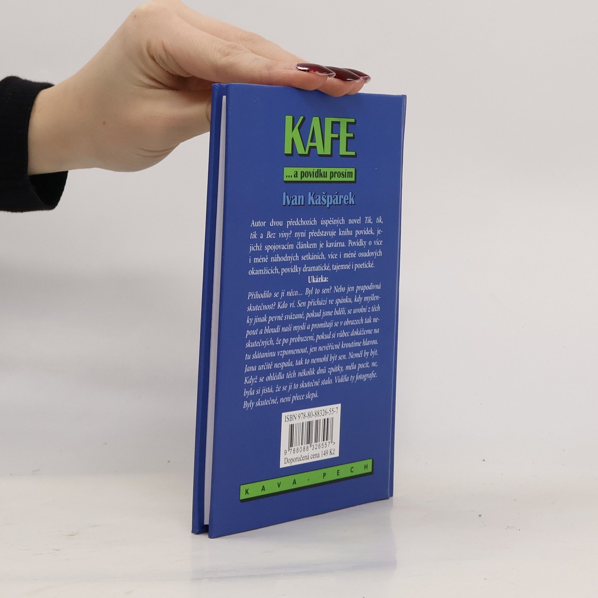 Autorpředstavuje knihu povídek, jejichž spojovacím článkem je kavárna. Povídky o více i méně náhodných setkáních, více i méně osudových okamžicích, povídky dramatické, tajemné i poetické.