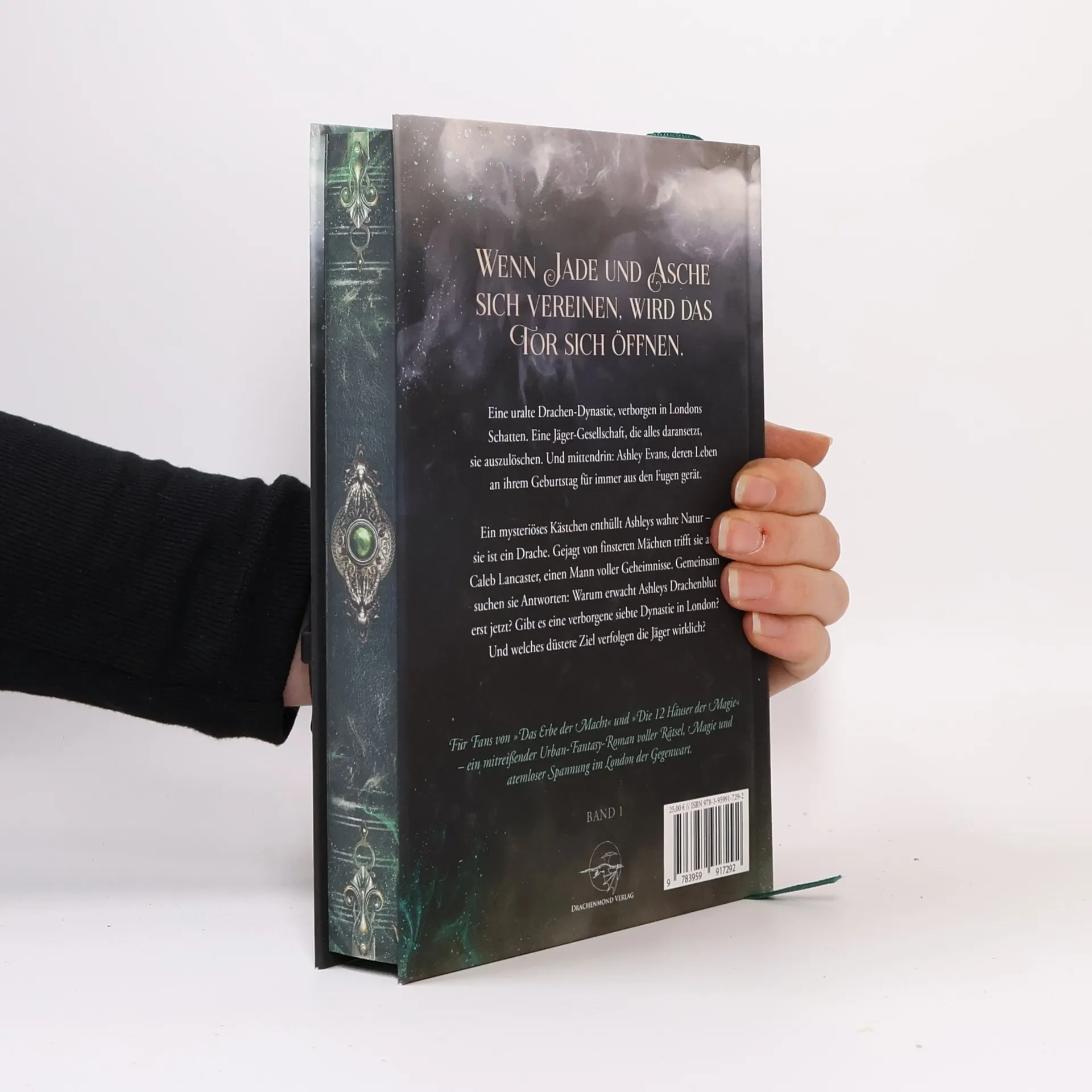 Wenn Jade und Asche sich vereinen, wird das Tor sich öffnen. Eine uralte Drachen-Dynastie, verborgen in Londons Schatten . Eine Jäger-Gesellschaft, die alles daransetzt, sie auszulöschen. Und mittendrin: Ashley Evans, deren Leben an ihrem Geburtstag für immer aus den Fugen gerät. Ein mysteriöses Kästchen enthüllt Ashleys wahre Natur – sie ist ein Drache. Gejagt von finsteren Mächten trifft sie auf Caleb Lancaster, einen Mann voller Geheimnisse. Gemeinsam suchen sie Antworten: Warum erwacht Ashleys Drachenblut erst jetzt? Gibt es eine verborgene siebte Dynastie in London? Und welches düstere Ziel verfolgen die Jäger wirklich?