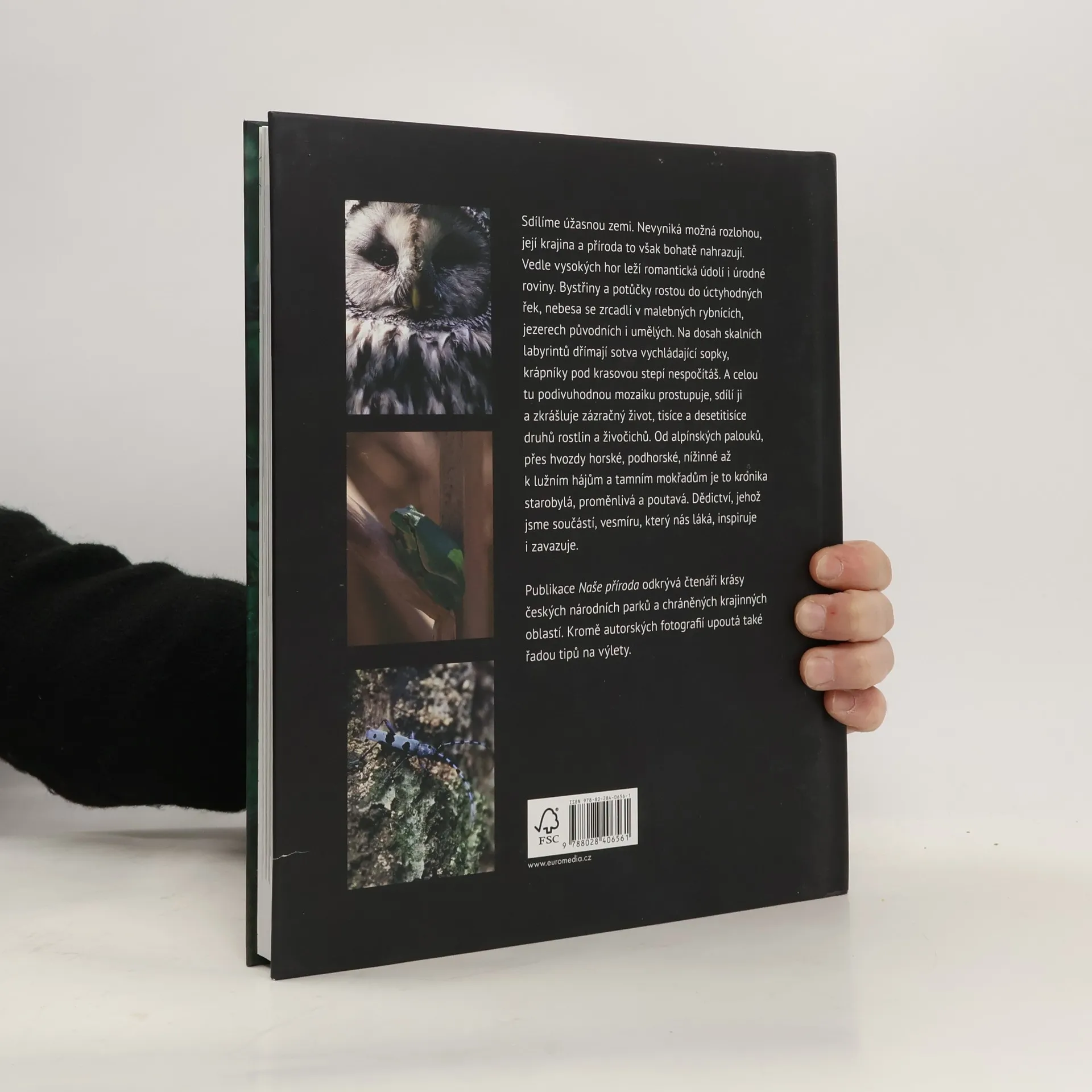 Sdílíme úžasnou zemi. Nevyniká možná rozlohou, její krajina a příroda to však bohatě nahrazují. Vedle vysokých hor leží romantická údolí i úrodné roviny. Bystřiny a potůčky rostou do úctyhodných řek, nebesa se zrcadlí v malebných rybnících, jezerech původních i umělých. Na dosah skalních labyrintů dřímají sotva vychládající sopky, krápníky pod krasovou stepí nespočítáš. A celou tu podivuhodnou mozaiku prostupuje, sdílí ji a zkrášluje zázračný život, tisíce a desetitisíce druhů rostlin a živočichů. Od alpínských palouků, přes hvozdy horské, podhorské, nížinné až k lužním hájům a tamním mokřadům je to kronika starobylá, proměnlivá a poutavá. Dědictví, jehož jsme součástí, vesmíru, který nás láká, inspiruje i zavazuje. – Publikace Naše příroda odkrývá čtenáři krásy českých národních parků a chráněných krajinných oblastí. Kromě autorských fotografií upoutá také řadou tipů na výlety.