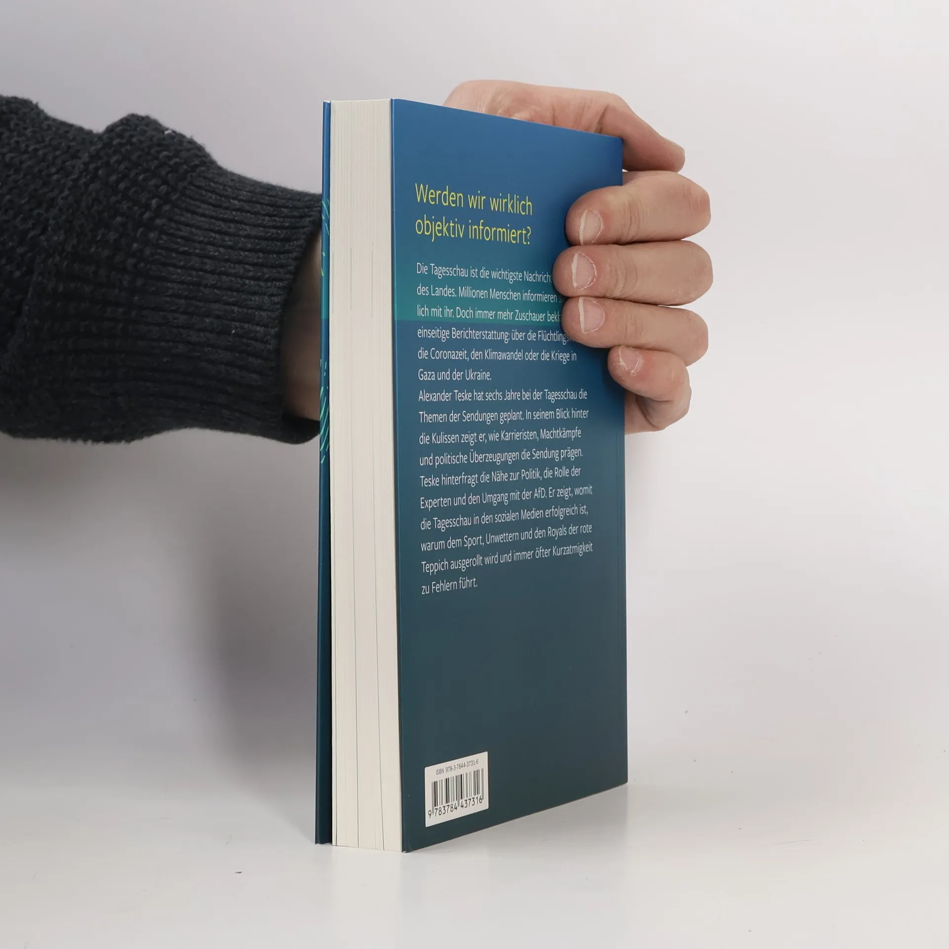 Die Tagesschau ist die wichtigste Nachrichtenmarke des Landes. Millionen Menschen informieren sich täglich bei ihr. Doch immer mehr Zuschauer beklagen eine einseitige Berichterstattung: Über die Flüchtlingskrise, die Coronazeit, den Klimawandel oder die Kriege in Gaza und der Ukraine. Alexander Teske hat sechs Jahre bei der Tagesschau die Themen der Sendungen geplant. In seinem Blick hinter die Kulissen zeigt er wie Karrieristen, Machtkämpfe und politische Überzeugungen die Sendung prägen. Teske hinterfragt die Nähe zur Politik, die Rolle der Experten und den Umgang mit der AfD. Er zeigt, womit die Tagesschau in den sozialen Medien erfolgreich ist, warum dem Sport, Unwettern und den Royals der rote Teppich ausgerollt wird und immer öfter Kurzatmigkeit zu Fehlern führt.