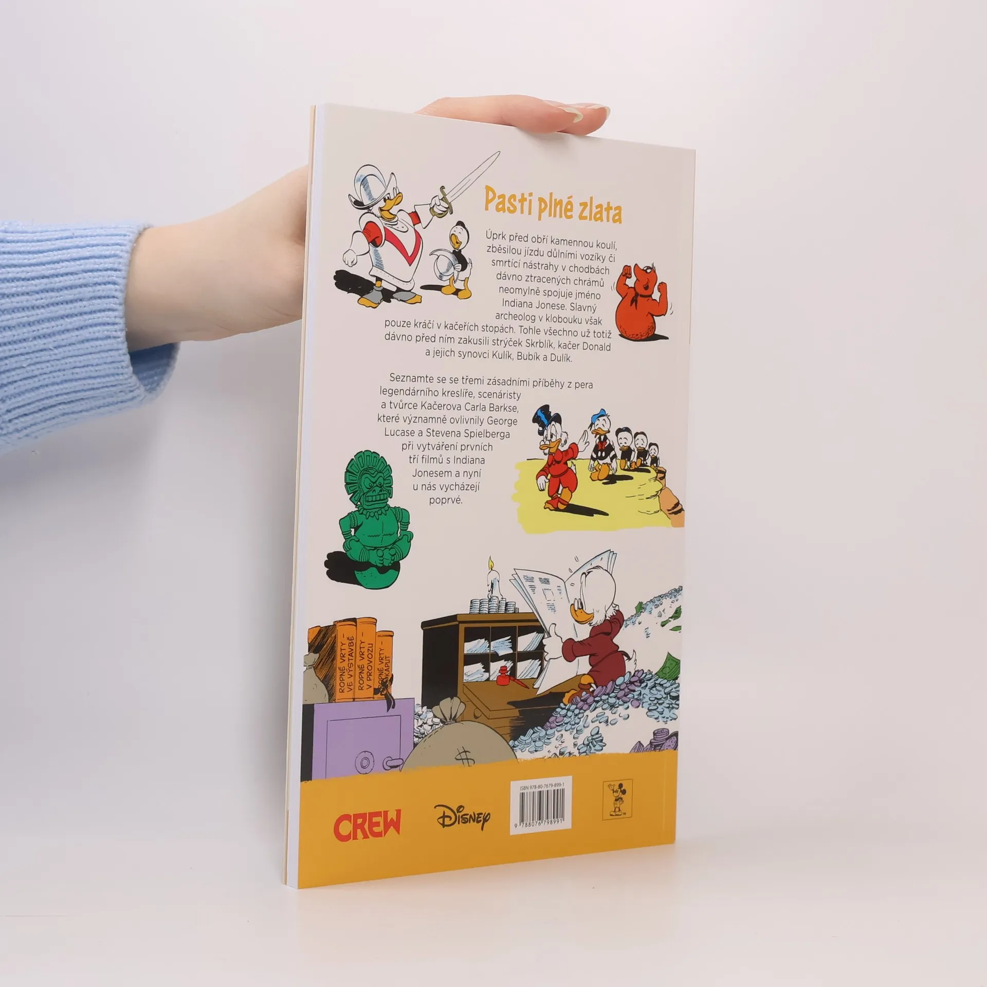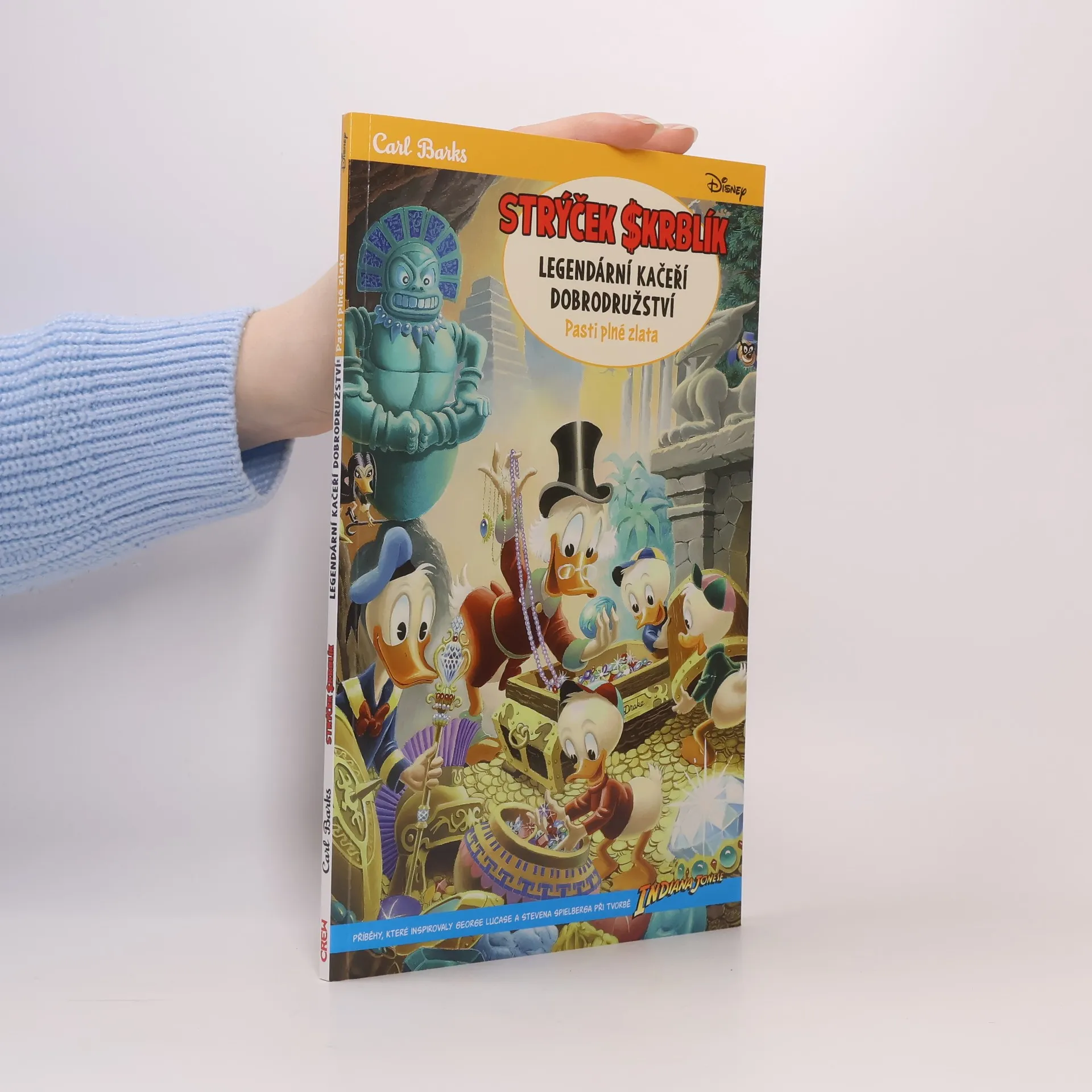 Úprk před obří kamennou koulí, zběsilou jízdu důlními vozíky či smrtící nástrahy v chodbách dávno ztracených chrámů neomylně spojuje jméno Indiana Jonese. Slavný archeolog v klobouku však pouze kráčí v kačeřích stopách. Tohle všechno už totiž dávno před ním zakusili Strýček Skrblík, kačer Donald a jejich synovci Kulík, Bubík a Dulík. Seznamte se se třemi zásadními příběhy z pera legendárního kreslíře, scenáristy a tvůrce Kačerova Carla Barkse, které významně ovlivnily George Lucase a Stevena Spielberga při vytváření prvních tří fi lmů s Indiana Jonesem a nyní u nás vycházejí poprvé.
