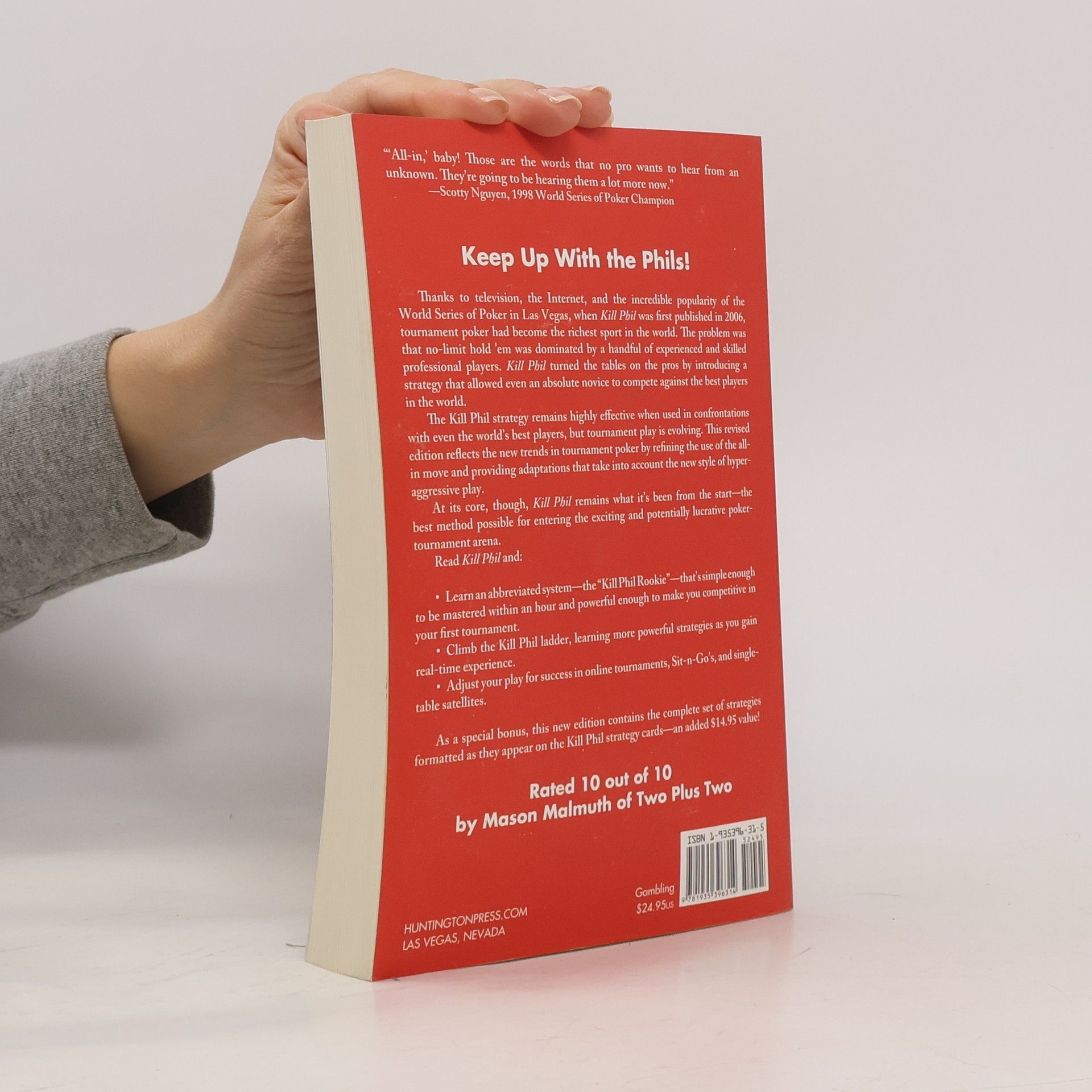 Thanks to television, the Internet, and the popularity of the World Series of Poker, tournament poker became the richest sport by 2006. However, no-limit hold 'em was largely dominated by a few skilled professionals. This book introduced a strategy that enabled novices to compete effectively against the best players. The Kill Phil strategy remains effective against top competitors, but tournament dynamics are evolving. This revised edition updates the approach to reflect new trends, refining the all-in move and adapting to the hyper-aggressive play style that has emerged. At its core, it continues to be the best method for entering the exciting and potentially lucrative world of poker tournaments. Readers will discover an abbreviated system—the "Kill Phil Rookie"—that can be mastered in under an hour, making it powerful enough for first-time tournament competitiveness. As you progress, you can climb the Kill Phil ladder, learning increasingly effective strategies through real-time experience. The book also provides guidance for success in online tournaments, Sit-n-Go's, and single-table satellites. Additionally, this edition includes a complete set of strategies formatted like the original Kill Phil strategy cards, adding significant value for readers.