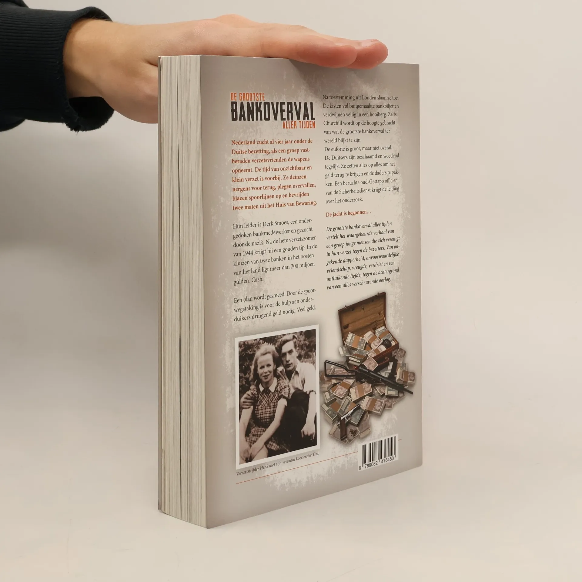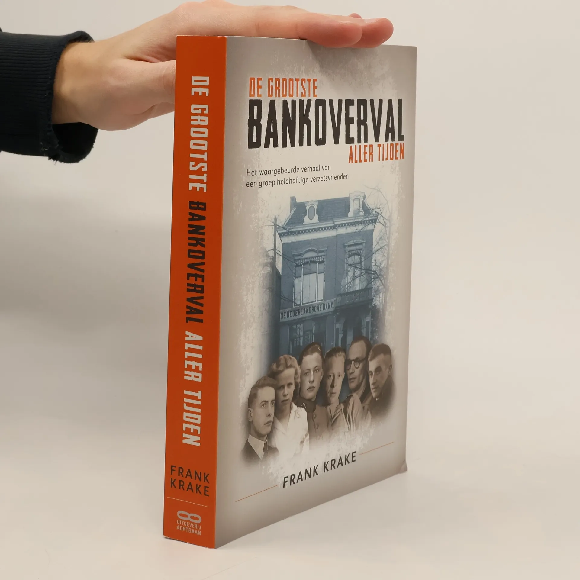 Nederland zucht al vier jaar onder de Duitse bezetting, als een groep vastberaden verzetsvrienden de wapens opneemt. De tijd van onzichtbaar en klein verzet is voorbij. Ze deinzen nergens voor terug, plegen overvallen, blazen spoorlijnen op en bevrijden twee maten uit het Huis van Bewaring. Hun leider is Derk Smoes, een ondergedoken bankmedewerker en gezocht door de nazi’s. Na de hete verzetszomer van 1944 krijgt hij een gouden tip. In de kluizen van twee banken in het oosten van het land ligt meer dan 200 miljoen gulden. Cash. Een plan wordt gesmeed. Door de spoorwegstaking is voor de hulp aan onderduikers dringend geld nodig. Veel geld. Na toestemming uit Londen slaan ze toe. De kisten vol buitgemaakte bankbiljetten verdwijnen veilig in een hooiberg. Zelfs Churchill wordt op de hoogte gebracht van wat de grootste bankoverval ter wereld blijkt te zijn. De euforie is groot, maar niet overal. De Duitsers zijn beschaamd en woedend tegelijk. Ze zetten alles op alles om het geld terug te krijgen en de daders te pakken. Een beruchte oud-Gestapo officier van de Sicherheitsdienst krijgt de leiding over het onderzoek. De jacht is begonnen… De grootste bankoverval aller tijden vertelt het waargebeurde verhaal van een groep jonge mensen die zich verenigen in hun verzet tegen de bezetters. Van ongekende dapperheid, onvoorwaardelijke vriendschap en een ontluikende liefde, tegen de achtergrond van een alles verscheurende oorlog. In zijn jeugd hoorde Frank Krake veelvuldig over de grootste bankoverval ter wereld. Zijn vader woonde tijdens de oorlog niet ver van de bank en vertelde er vol trots over. Het verhaal fascineerde Frank zodanig dat hij vijf jaar geleden met zijn archiefonderzoek startte. Na jarenlang grondig speurwerk in (inter)nationale archieven en interviews met tientallen betrokkenen van de tweede generatie kreeg het verhaal vorm. Het wachten was op de dag dat na 75 jaar beslotenheid ook de laatste archieven hun geheimen prijs mochten geven. Op 1 januari 2021 was het zo ver. De uitkomst bleek ronduit spectaculair. Twee nog in leven zijnde ooggetuigen, zorgden voor de laatste waarheidsgetrouwe details. Zoals gebruikelijk bij Krake’s boeken gaat het verhaal vergezeld met tal van historische foto’s, grotendeels nooit eerder gepubliceerd.