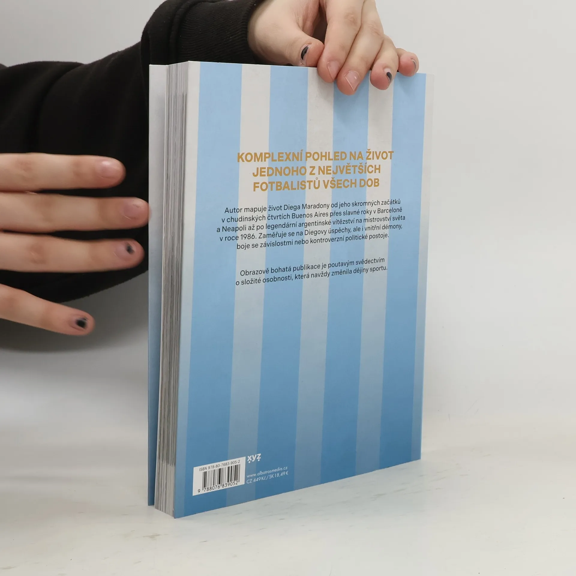 Komplexní pohled na život jednoho z největších fotbalistů všech dob. Autor mapuje život Diega Maradony od jeho skromných začátků v chudinských čtvrtích Buenos Aires přes slavné roky v Barceloně a Neapoli až po legendární argentinské vítězství na mistrovství světa v roce 1986. Zaměřuje se na Diegovy úspěchy, ale i vnitřní démony, boje se závislostmi nebo kontroverzní politické postoje. Obrazově bohatá publikace je poutavým svědectvím o složité osobnosti, která navždy změnila dějiny sportu.