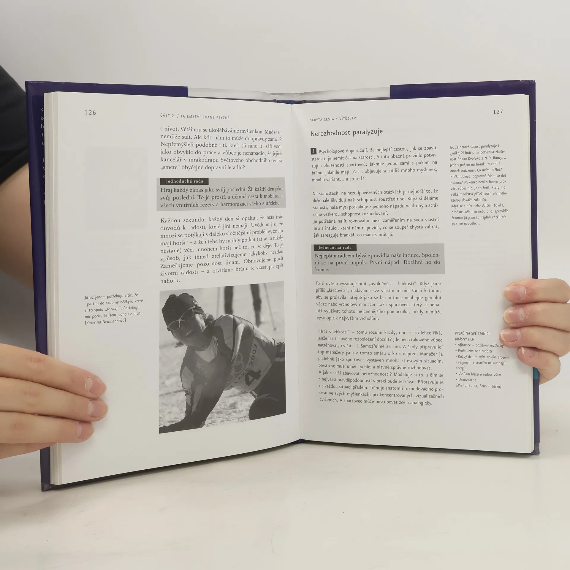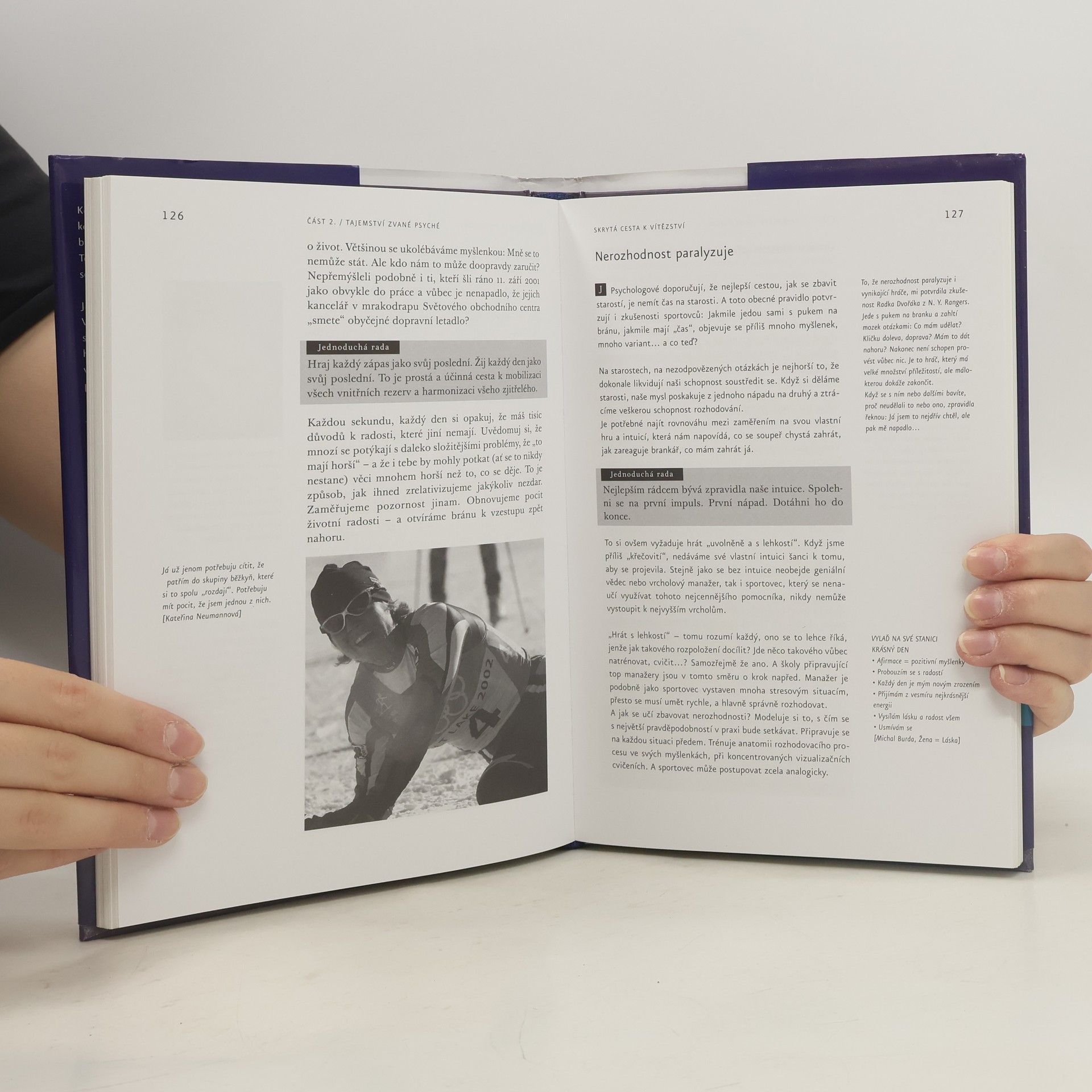 Skrytá cesta k vítězství - Utajené zákulisí sportu Láká vás dobrodružství objevování vlastních skrytých sil a schopností? Zveme vás na společnou cestu do prostoru neomezeného vžitými stereotypy myšlení... v této knize se režisérka (mj. autorka televizního cyklu Curriculum vitae) a špičkový trenér známých sportovců (osobní trenér Jaromíra Jágra) vydávají za záhadami sportovních výkonů. Za záhadami člověka.