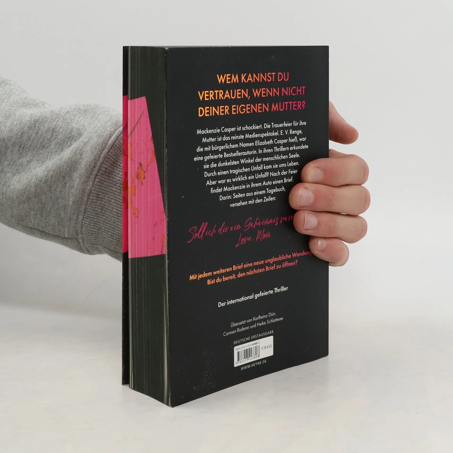 Wem kannst du vertrauen, wenn nicht deiner eigenen Mutter? Mit Farbschnitt in limitierter Erstauflage – Lieferung je nach Verfügbarkeit Studentin Mackenzie Casper hat stets im Schatten ihrer berühmten Mutter Elizabeth gelebt, einer der bekanntesten Thriller-Autorinnen der Welt. Doch jetzt ist Elizabeth tot. Mackenzie ist nicht die Einzige die Zweifel daran hat, dass es ein tragischer Unfall war. Auf der Trauerfeier erhält sie einen mysteriösen Brief mit Seiten aus dem Tagebuch ihrer Mutter. Weitere Briefe folgen. Hatte ihre Mom Geheimnisse, die sie das Leben kosteten? Um das herauszufinden, muss Mackenzie selbst Nachforschungen anstellen. Dabei darf sie niemandem trauen. Vor allem nicht ihrer Familie.