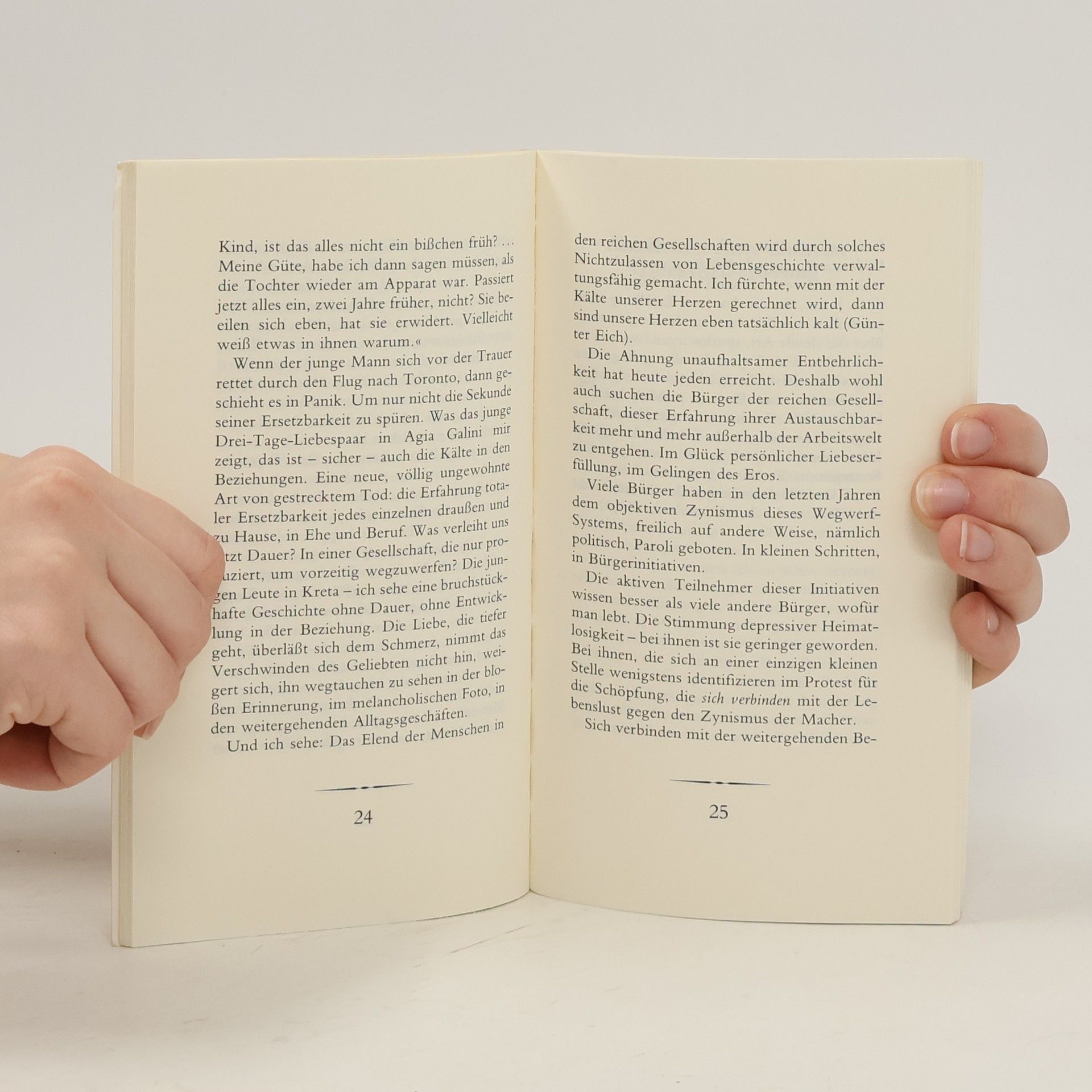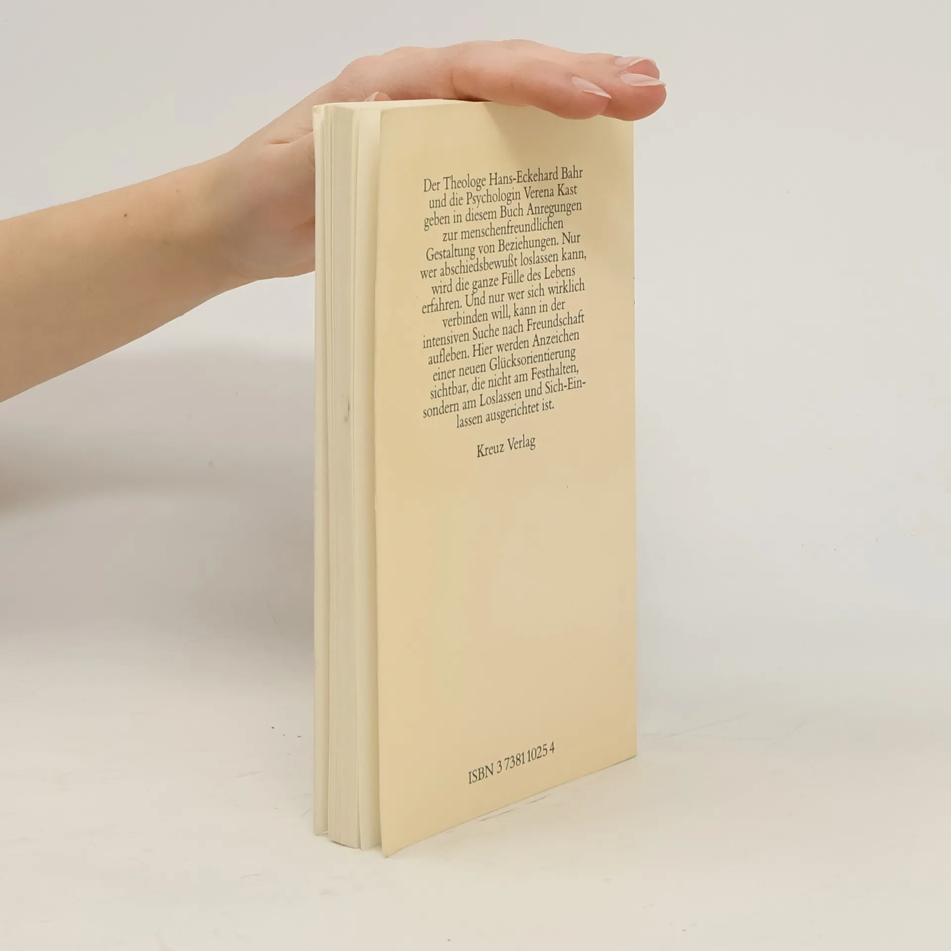 Der Theologe Hans-Eckehard Bahr und die Psychotherapeutin Verena Kast machen sich in diesem Buch Gedanken über die Zusammenhänge von Liebe und Schmerz, Trauer und Befreiung. Sie stellen uns Anzeichen einer neuen Glücksorientierung vor, die nicht am Festhalten, sondern am Loslassen und Sich-Einlassen ausgerichtet ist. Dass Abschiede in der Liebe, überhaupt in Beziehungen notwendig sind, ja die Notwendigkeit einer "abschiedlichen Existenz" (Verena Kast) besteht, zeigen sie eindrucksvoll: Nur wer abschiedsbewusst loslassen kann, wird die ganze Fülle des Lebens erfahren. Und nur wer sich wirklich verbinden will, kann in der intensiven Suche nach Freundschaft leben. Dem anderen treu zu bleiben bedeutet dann, zunächst sich selber treu zu werden. Verlässlichkeit, erotische Belebung, Trauer und Freude müssen keine Gegensätze bleiben- sie führen über den hilflosen Moralismus hinaus, der in den Kirchen heute noch maßgebend ist. "Das Zulassen der Trauer ist die Voraussetzung dafür, dass wir uns auch freuen können, dass wir uns richtig einlassen auf unser Leben. Wenn wir es verstehen, zu trauern - und es ist weiß Gott schwierig -, müssen wir uns nicht aus Angst vor den Verlusten aus dem Leben heraushalten. Nur wenn wir loslassen können, können wir uns auch einlassen. Das Sich-Einlassen aber ist meistens mit Freude verbunden" (Verena Kast).