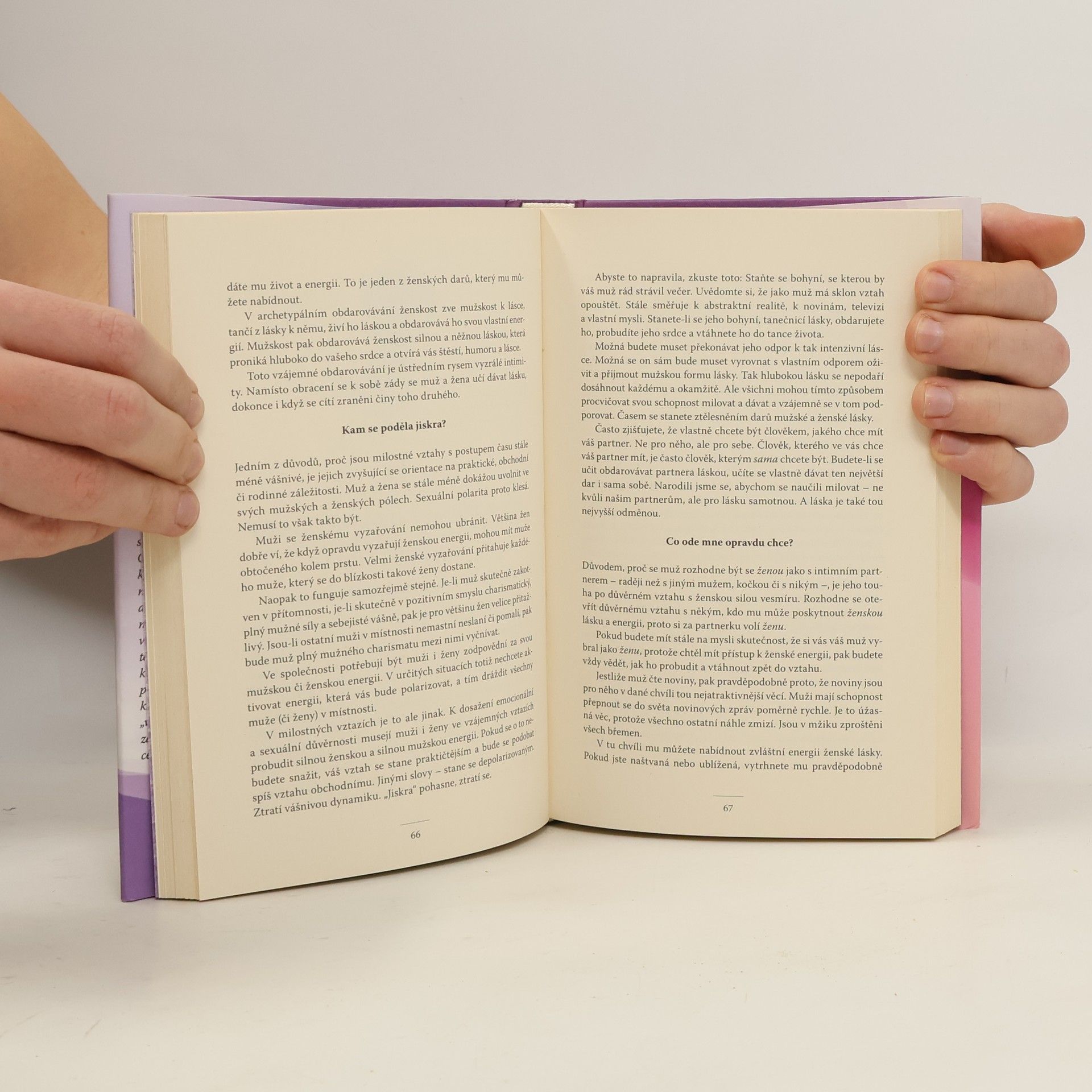 Hledáte spřízněnou duši nebo se snažíte přimět manžela, aby vynášel odpadky? Narazili jste na chování mužů, kterému nerozumíte, a ptáte se: „Proč to dělají?“ Tato kniha přináší netradiční odpovědi na otázky žen o mužích, což zajisté zaujme i muže. Nabízí naději těm, kteří chtěli vzdát touhu po lásce a porozumění. Obsahuje užitečnou příručku, která odpovídá na časté otázky, jako například: Proč se muži otáčejí za pohlednými ženami? Proč se raději věnují práci než vztahům? Proč se vyhýbají agresivním ženám? Autor David Deida zkoumá mužské vlastnosti, vysvětluje rozdíly mezi pohlavími a odhaluje důvody mužského chování. Jako uznávaný specialista na vztahy vychází ze zkušeností žen po celém světě a ukazuje, jak mohou ženy využít své schopnosti k překonání pastí ve vztazích. Formou otázek a odpovědí autor pomáhá ženám budovat důvěrné vztahy, rozdmýchat vášeň a zlepšit komunikaci s partnery. Kniha také učí, jak se vyrovnat s odlišnostmi mužů a posiluje schopnost zlepšit vztahy se všemi muži v životě, včetně přátel a nadřízených. Vede čtenáře do světa porozumění, respektu a lásky, a obnovuje toleranci ve vztazích mezi muži a ženami.