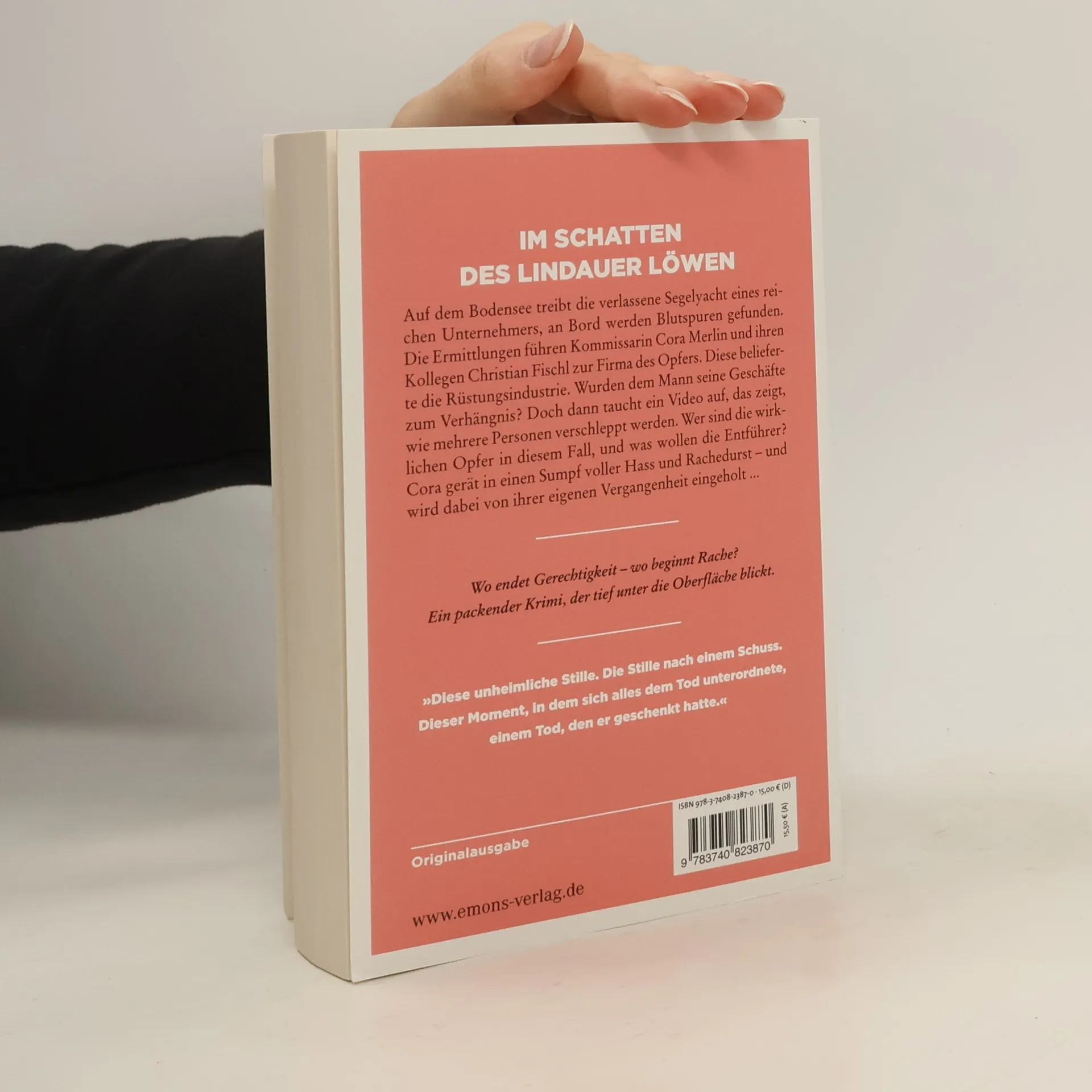 Packend, intensiv und glänzend recherchiert. Auf dem Bodensee treibt die verlassene Segelyacht eines reichen Unternehmers, an Bord werden Blutspuren gefunden. Die Ermittlungen führen Kommissarin Cora Merlin und ihren Kollegen Christian Fischl zur Firma des Opfers. Diese belieferte die Rüstungsindustrie. Wurden dem Mann seine Geschäfte zum Verhängnis? Doch dann taucht ein Video auf, das zeigt, wie mehrere Personen verschleppt werden. Wer sind die wirklichen Opfer in diesem Fall, und was wollen die Entführer? Cora gerät in einen Sumpf voller Hass und Rachedurst – und wird dabei von ihrer eigenen Vergangenheit eingeholt ...