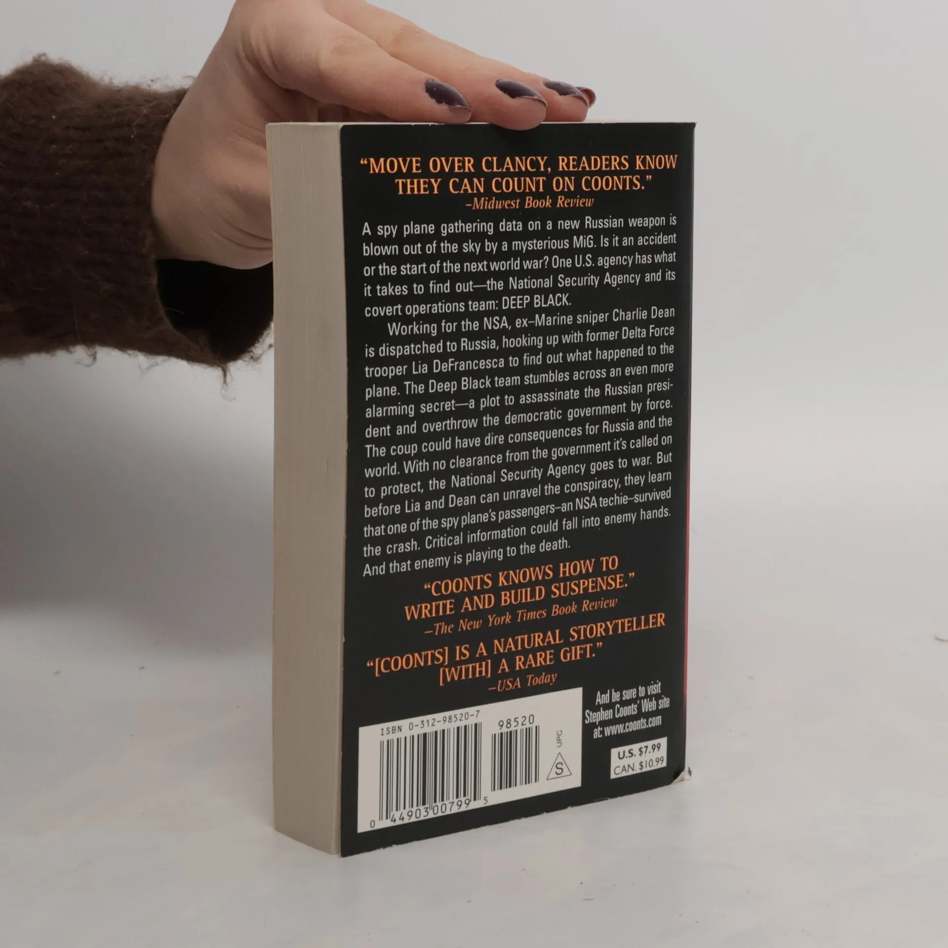 A spy plane gathering data on a new Russian weapon is blown out of the sky by a mysterious MiG. Is it an accident or the start of the next world war? One U.S. agency has what it takes to find out-the National Security Agency and its covert operations team: DEEP BLACK.Working for the NSA, ex-Marine sniper Charlie Dean is dispatched to Russia, hooking up with former Delta Force trooper Lia DeFrancesca to find out what happened to the plane. The Deep Black team stumbles across an even more alarming secret-a plot to assassinate the Russian president and overthrow the democratic government by force. The coup could have dire consequences for Russia and the world. With no clearance from the government it's called on to protect, the National Security Agency goes to war. But before Lia and Dean can unravel the conspiracy, they learn that one of the spy plane's passengers-an NSA techie-survived the crash. Critical information could fall into enemy hands. And that enemy is playing to the death.
