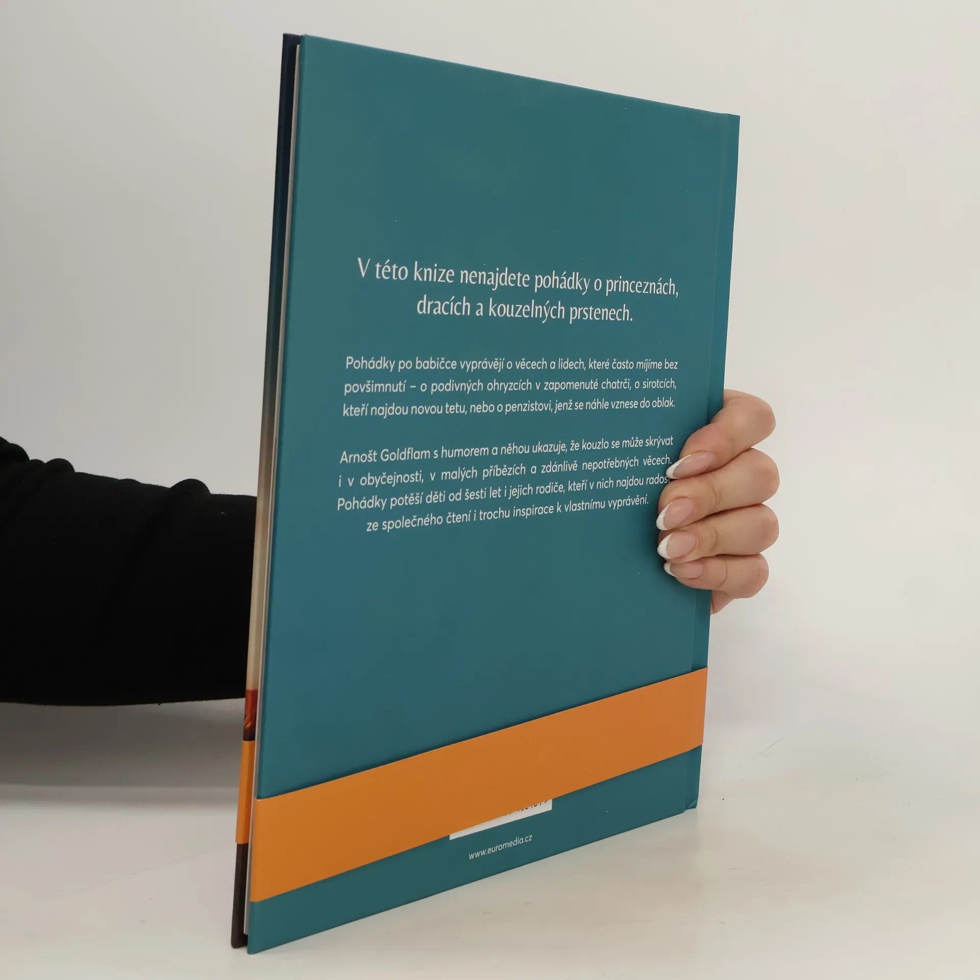 V této knize nenajdete pohádky o princeznách, dracích a kouzelných prstenech. Pohádky po babičce vyprávějí o věcech a lidech, které často míjíme bez povšimnutí – o podivných ohryzcích v zapomenuté chatrči, o sirotcích, kteří najdou novou tetu, nebo o penzistovi, jenž se náhle vznese do oblak. Arnošt Goldflam s humorem a něhou ukazuje, že kouzlo se může skrývat i v obyčejnosti, v malých příbězích a zdánlivě nepotřebných věcech. Pohádky potěší děti od šesti let i jejich rodiče, kteří v nich najdou radost ze společného čtení i trochu inspirace k vlastnímu vyprávění.