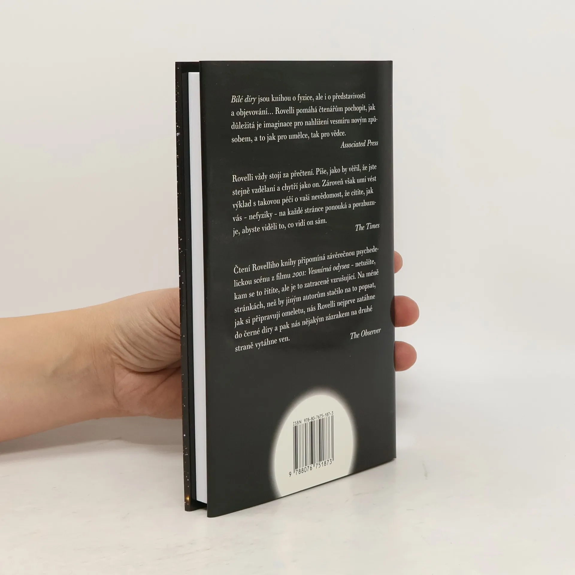 Teoretický fyzik a podmanivý vypravěč Carlo Rovelli nás vezme na výpravu do nitra černé díry. Překročíme její horizont, ponoříme se do temného trychtýře a sestoupíme až na samé dno této trhliny ve vesmíru, kde končí čas a prostor. Co se s námi stane pak? Rovelli čtenáře zve, aby ho následovali na jeho dobrodružné cestě vlastního výzkumu na hranici teorie a experimentu a aby s ním zažili horečku a neklid vědy. Představuje při tom úchvatnou myšlenku, že by se černé díry mohly proměnit v díry bílé - stejně kompaktní objekty, v nichž je však šipka času obrácena. Spolu s autorem můžeme na této imaginativní intelektuální výpravě zažít vzrušující nejistotu i radost z možnosti vkročit tam, kam se ještě nikdo z nás nepodíval.