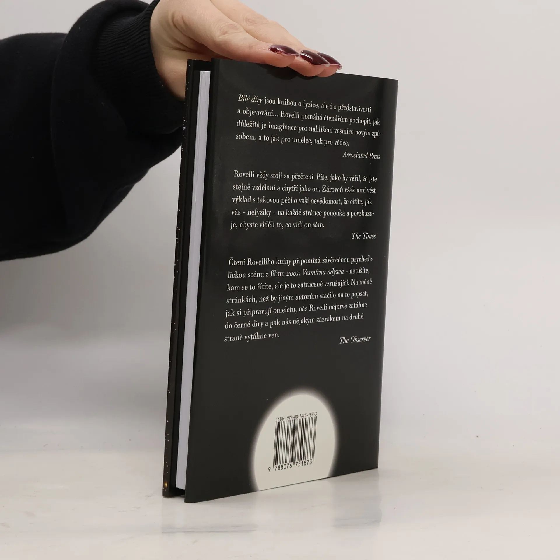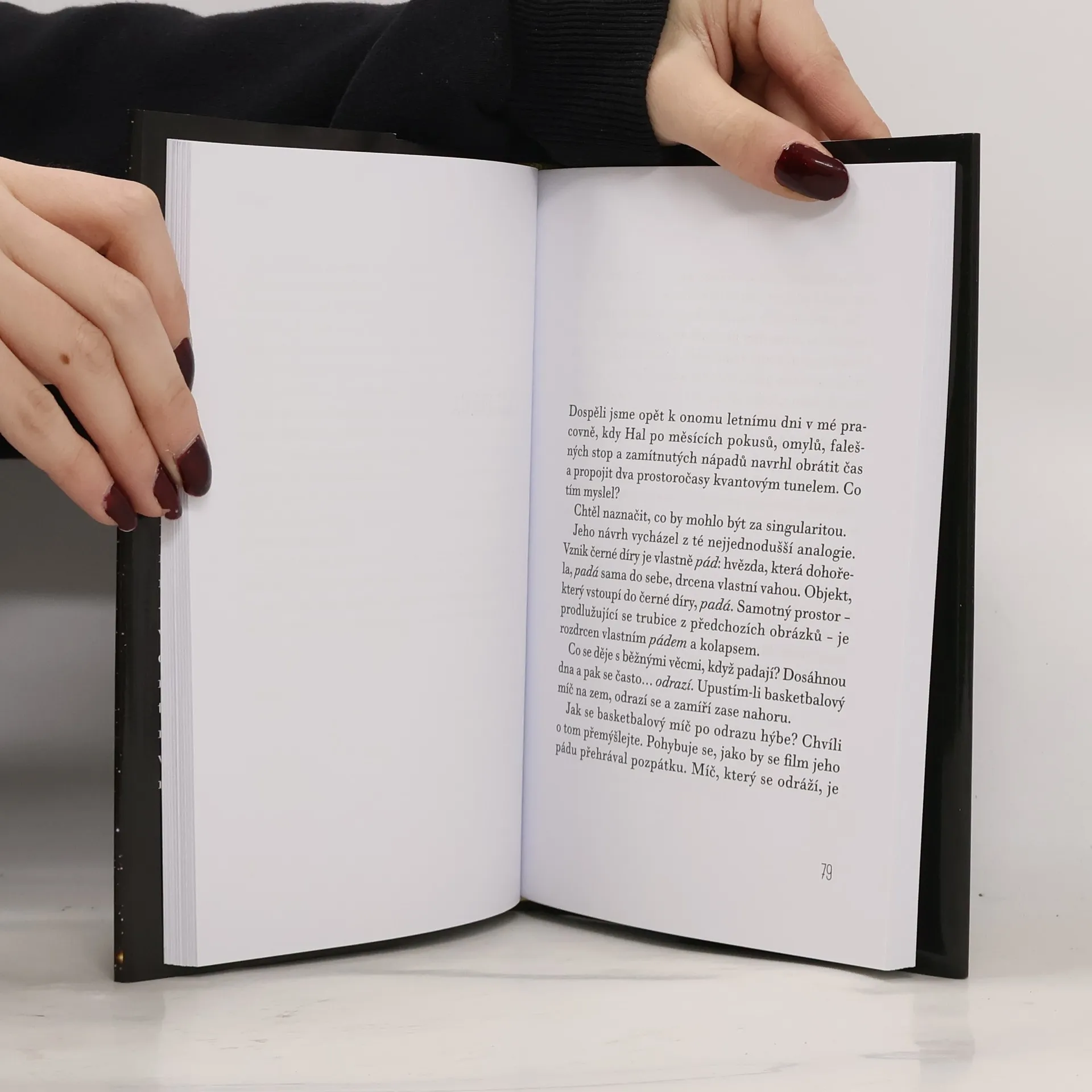 Teoretický fyzik a podmanivý vypravěč Carlo Rovelli nás vezme na výpravu do nitra černé díry. Překročíme její horizont, ponoříme se do temného trychtýře a sestoupíme až na samé dno této trhliny ve vesmíru, kde končí čas a prostor. Co se s námi stane pak? Rovelli čtenáře zve, aby ho následovali na jeho dobrodružné cestě vlastního výzkumu na hranici teorie a experimentu a aby s ním zažili horečku a neklid vědy. Představuje při tom úchvatnou myšlenku, že by se černé díry mohly proměnit v díry bílé - stejně kompaktní objekty, v nichž je však šipka času obrácena. Spolu s autorem můžeme na této imaginativní intelektuální výpravě zažít vzrušující nejistotu i radost z možnosti vkročit tam, kam se ještě nikdo z nás nepodíval.