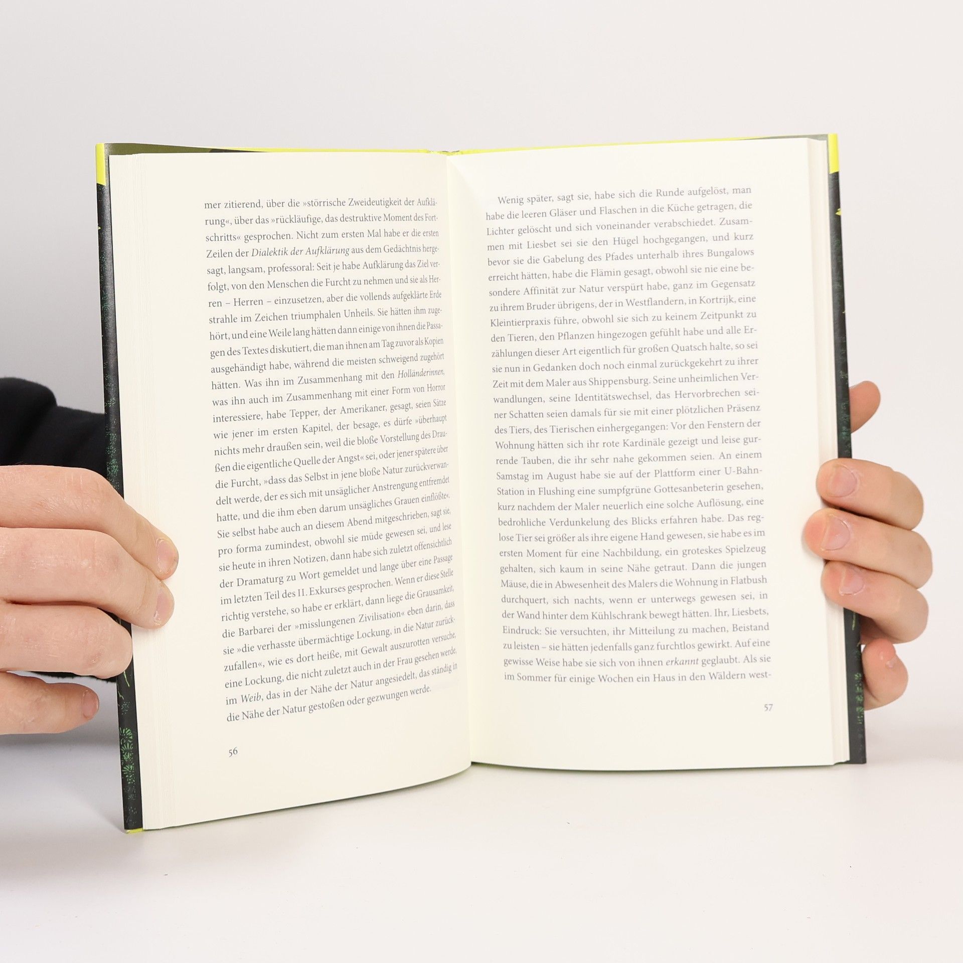 Dorothee Elmigers neuer, bildgewaltiger Roman – eine mitreißende Erfahrung. Wer diesen Text betritt, fällt in den Abgrund unserer Welt und blickt mit aufgerissenen Augen in die Finsternis. Nominiert für den Deutschen Buchpreis 2025Mit blinkenden Warnlichtern fährt die Erzählerin, eine namenlose Schriftstellerin, an den Straßenrand, als ein unerwarteter Anruf sie erreicht. Am Apparat ist ein gefeierter Theatermacher, der sie für sein neuestes Vorhaben zu gewinnen versucht – ein in den Tropen angesiedeltes Stück, die Rekonstruktion eines Falls. Wenige Wochen später bricht sie auf, um sich der Theatergruppe auf ihrem Gang ins tiefe Innere des Urwalds anzuschließen. Dorothee Elmiger erzählt eine beunruhigende Geschichte von Menschen und Monstren, von Furcht und Gewalt, von der Verlorenheit im Universum und vom Versagen der Erzählungen.