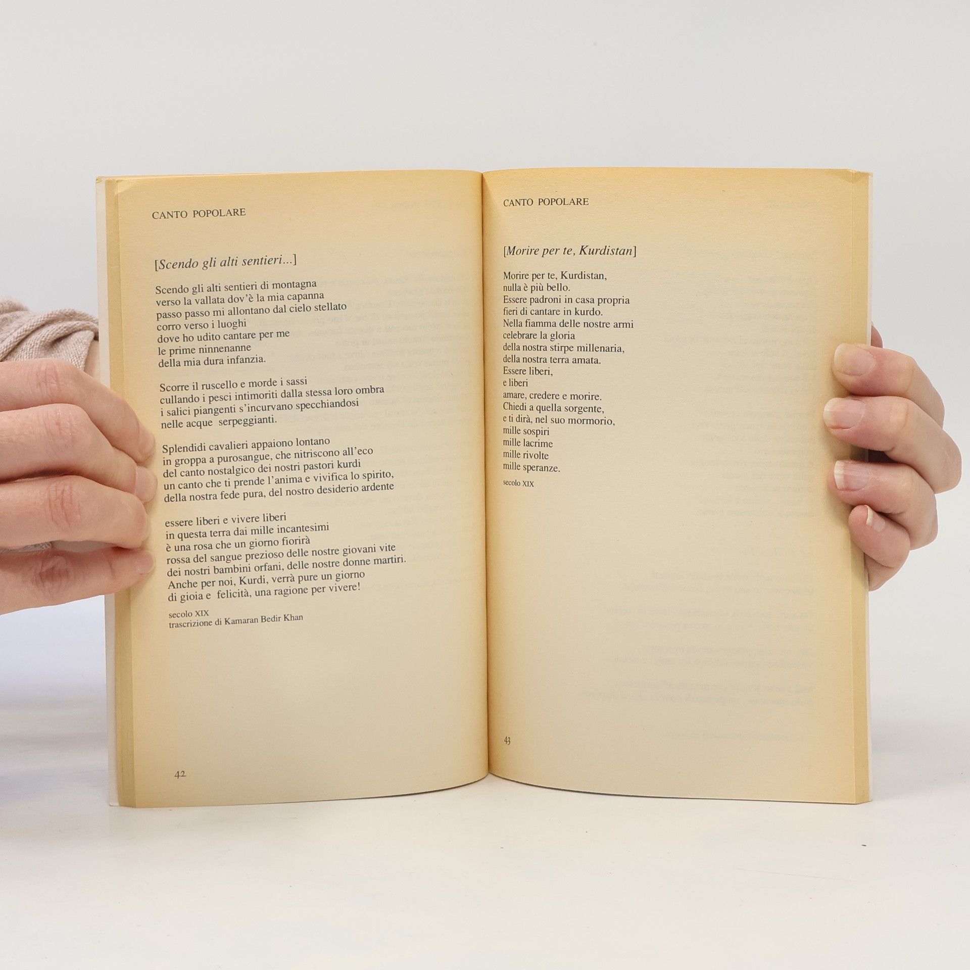 Nascosta tra le montagne, dimenticata dal mondo come il popolo da cui nasce, la poesia kurda canta l'amore e la guerra, la passione per la propria terra e la libertà. Negli ultimi settant'anni, dopo la spartizione del Kurdistan tra Iran, Irak, Siria e Turchia, racconta le atroci persecuzioni di cui è vittima il popolo kurdo, fino allo sterminio con armi chimiche nell'Irak di Saddam Hussein e alla guerra senza quartiere in Turchia. Questa raccolta presenta, per ogni secolo, le opere più significative della poesia kurda d'autore e del ricchissimo folklore kurdo. Nelle espressioni di una cultura e di una lingua millenaria, oggi represse e proibite, si rivela l'anima di un popolo innamorato della propria terra e della libertà.