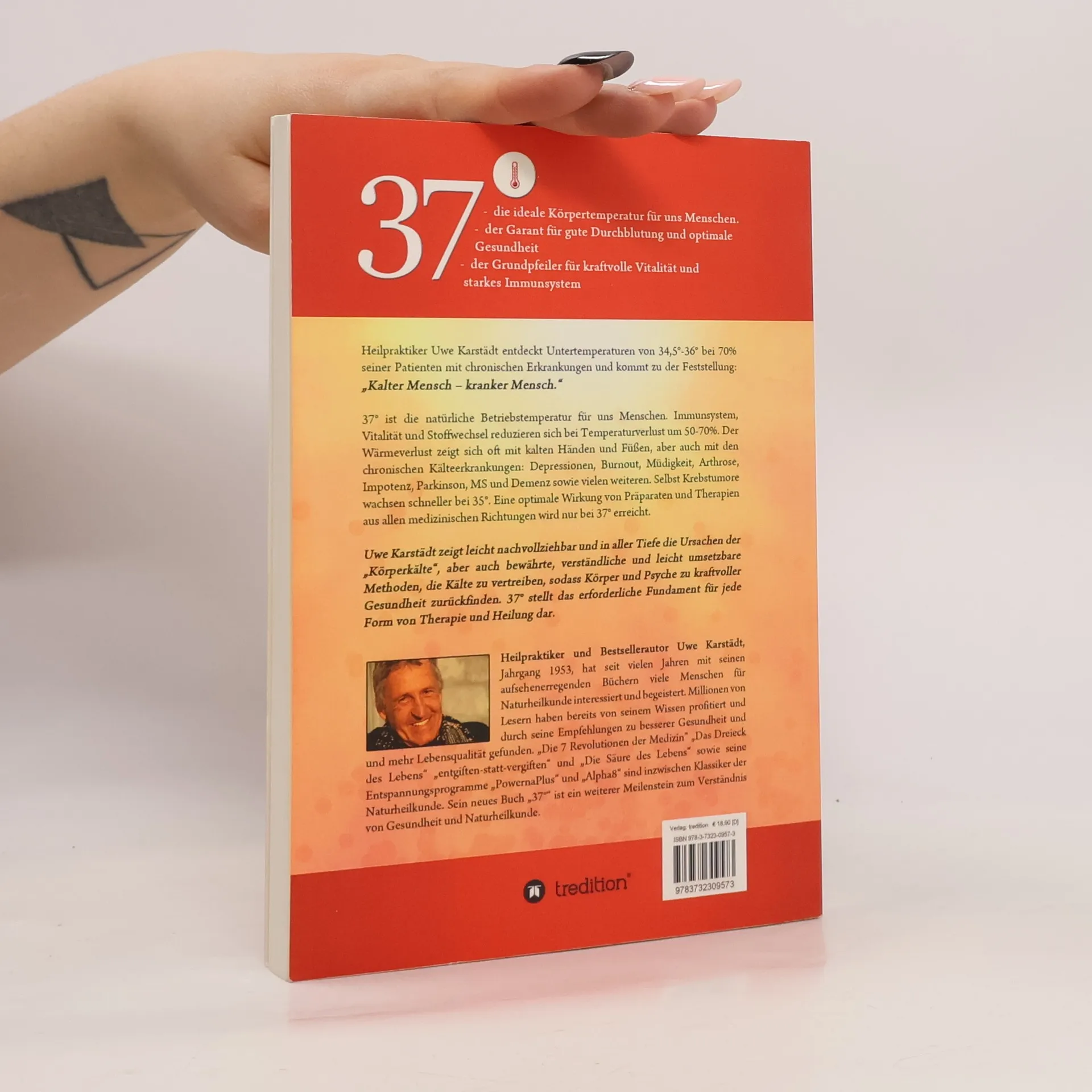 37° ist die ideale Körpertemperatur für Menschen, entscheidend für gute Durchblutung, Gesundheit, Vitalität und ein starkes Immunsystem. Heilpraktiker Uwe Karstädt stellt fest, dass 70% seiner Patienten mit chronischen Erkrankungen Untertemperaturen von 34,5°-36° aufweisen, was zu der Erkenntnis führt: „Kalter Mensch - kranker Mensch." Ein Temperaturverlust reduziert Immunsystem, Vitalität und Stoffwechsel um 50-70%. Symptome wie kalte Hände und Füße sind häufig, ebenso wie chronische Erkrankungen wie Depressionen, Burnout, Müdigkeit, Arthrose, Impotenz, Parkinson, MS und Demenz. Sogar Krebstumore wachsen schneller bei 35°. Nur bei 37° entfalten Medikamente und Therapien ihre volle Wirkung. Karstädt erklärt anschaulich die Ursachen der „Körperkälte“ und bietet bewährte, leicht umsetzbare Methoden zur Wiederherstellung der Körperwärme, um Gesundheit und Wohlbefinden zu fördern. 37° bildet das Fundament für jede Therapie und Heilung. Uwe Karstädt, Jahrgang 1953, hat mit seinen Büchern viele für Naturheilkunde begeistert. Millionen Leser profitieren von seinem Wissen und seinen Empfehlungen zur Verbesserung der Gesundheit. Sein neues Buch ist ein weiterer bedeutender Beitrag zum Verständnis von Gesundheit und Naturheilkunde.