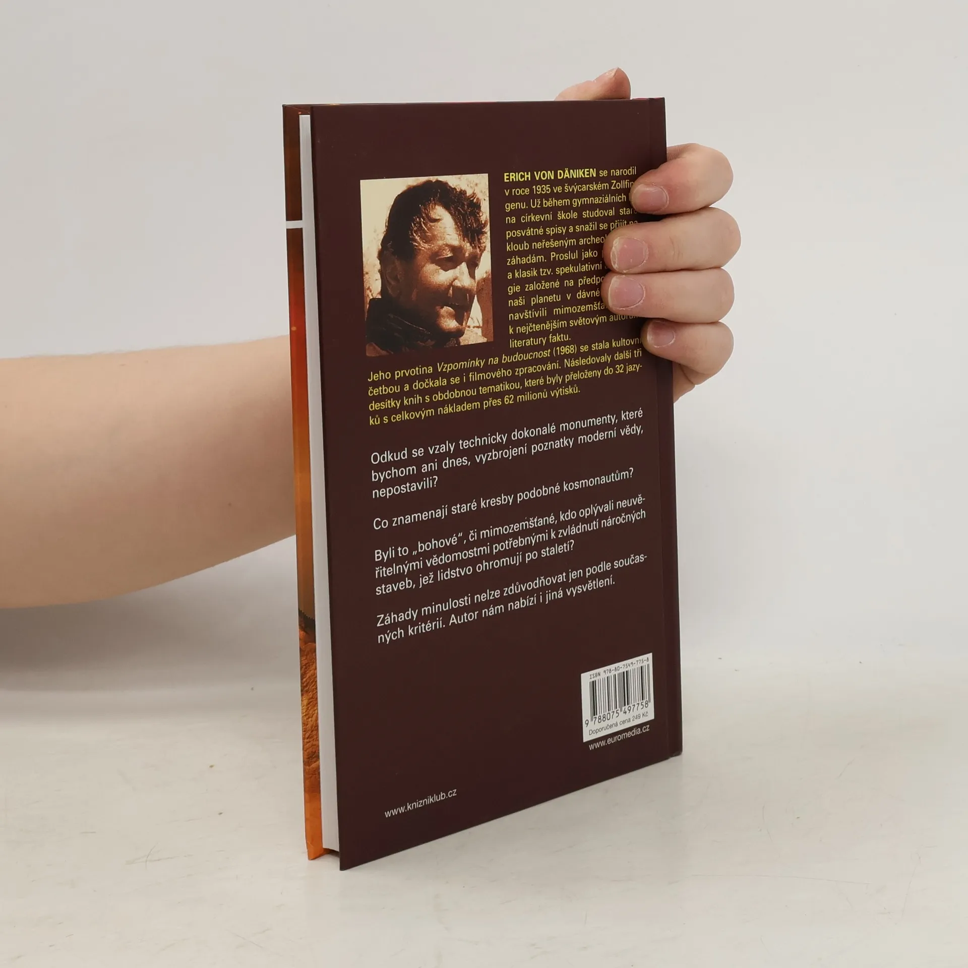 Nejslavnější autorovo dílo Vzpomínky na budoucnost bylo zfilmováno a přeloženo do 32 jazyků. Odkud se vzaly technicky dokonalé monumenty, které bychom ani dnes, vyzbrojení poznatky moderní vědy, nepostavili? Co znamenají staré kresby podobné kosmonautům? Byli to „bohové“, či mimozemšťané, kteří oplývali neuvěřitelnými vědomostmi potřebnými k zvládnutí náročných staveb, jež lidstvo ohromují po staletí? Záhady minulosti nelze zdůvodňovat jen podle současných kritérií. Autor nám nabízí i jiná vysvětlení.