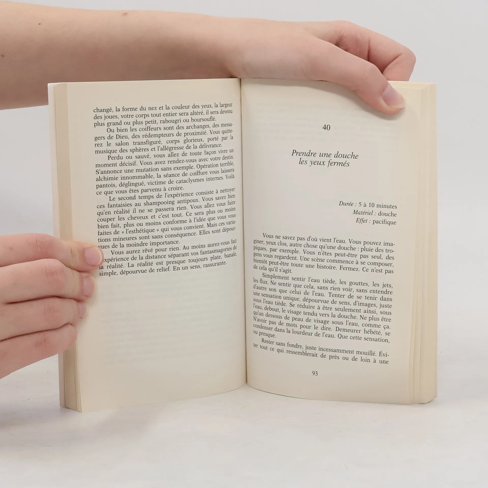 Ça va très vite. Vous faites durer le monde vingt minutes. Vous mettez les étoiles en bas. Vous téléphonez au hasard, buvez en pissant, inventez les titres de l'actualité. Chaque fois, de petites portes s'ouvrent dans la tête. Voilà bien une expérience idiote, direz-vous : tout à fait inutile, dépourvue d'intérêt. Vous avez entièrement raison. C'est justement à cela qu'elle sert : rendre sensible une infinité de questions sans portée autant que sans réponse. C'est ainsi depuis qu'il y a des philosophes : commencer à penser exige une pratique du décalage, du pas de côté, du changement d'optique.
