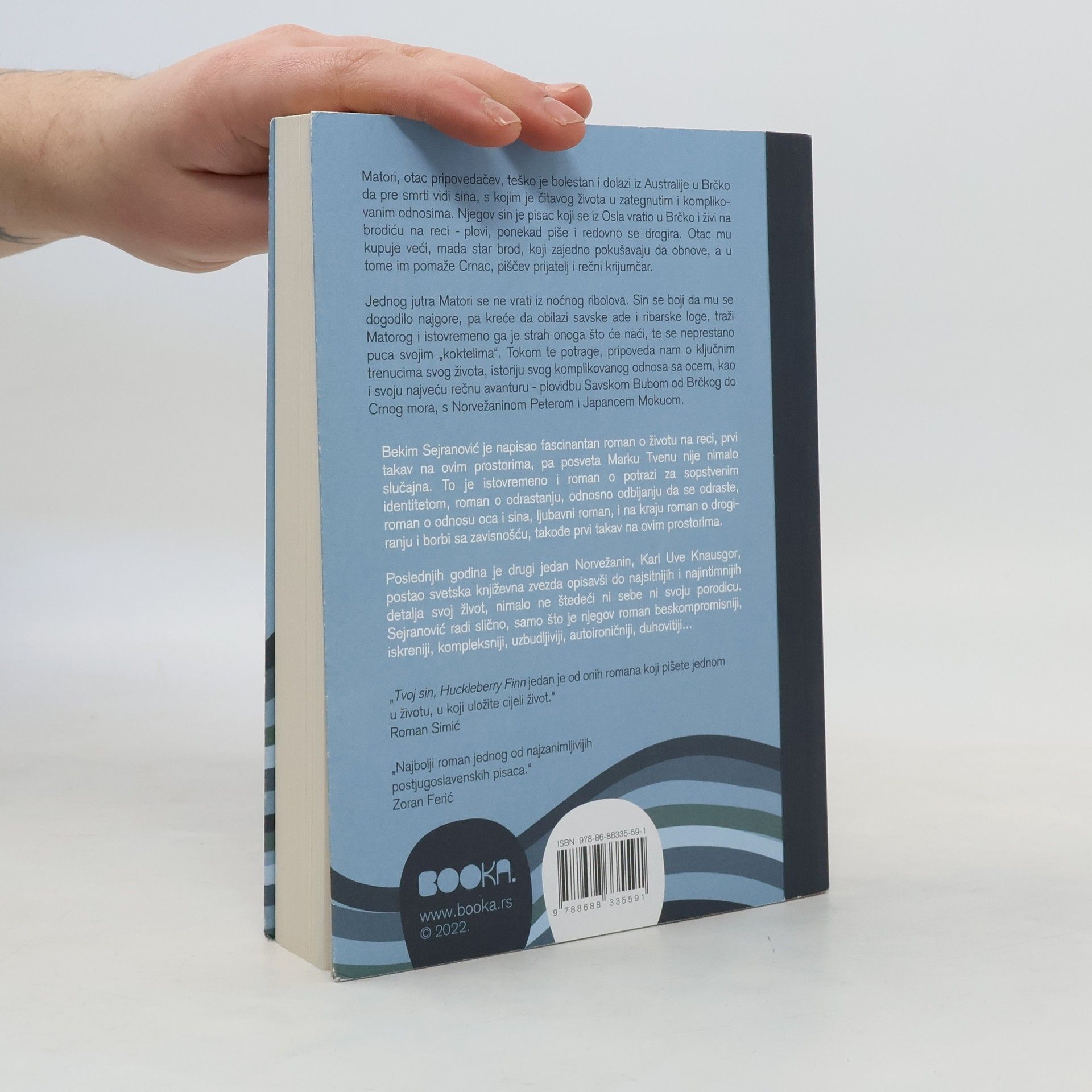 Matori, pripovjedačev otac, teško je bolestan, prije smrti dolazi iz Australije u Brčko vidjeti sina s kojim je cijeli život u zategnutim i kompliciranim odnosima. Njegov sin je pisac koji se iz Osla vratio u Brčko i živi u brodici na rijeci – plovi, ponekad piše i redovito se drogira. Otac mu kupuje veći, ali stari brod koji zajedno pokušavaju obnoviti, a u tome im pomaže Crnac, piščev prijatelj i riječni krijumčar. Matori se jednog jutra nije vratio s noćnog ribolova. Sin se boji da se dogodilo najgore, pa krene obilaziti savske ade i ribičke loge, traži Matorog i istovremeno ga je strah onoga što će naći pa se neprestano puca svojim ‘koktelima’. Tijekom potrage pripovijeda nam povijest kompleksnog odnosa s ocem, ali i druge ključne trenutke svog života, kao i svoju najveću riječnu avanturu, plovidbu Savskom bubom, s Norvežaninom Petterom i Japancem Mokuom, od Brčkog do Crnog mora. Bekim Sejranović napisao je fascinantan roman o životu na rijeci, prvi takav na ovim prostorima, pa posveta Marku Twainu nije nimalo slučajna. To je istovremeno i roman o potrazi za vlastitim identitetom, roman o odrastanju odnosno odbijanju da se odraste, roman o odnosu oca i sina, ljubavni roman, i na kraju, roman o drogiranju i borbi s ovisnošću, također prvi takav na ovim prostorima. Zadnjih godina jedan drugi Norvežanin, Karl Ove Knausgaard, postao je svjetska književna zvijezda opisavši do najsitnijih i najintimnijih detalja svoj život, pritom nimalo ne štedeći ni sebe ni svoju obitelj. Sejranović radi slično, samo što je njegov roman beskompromisniji, iskreniji, kompleksniji, uzbudljiviji, autoironičniji, duhovitiji..