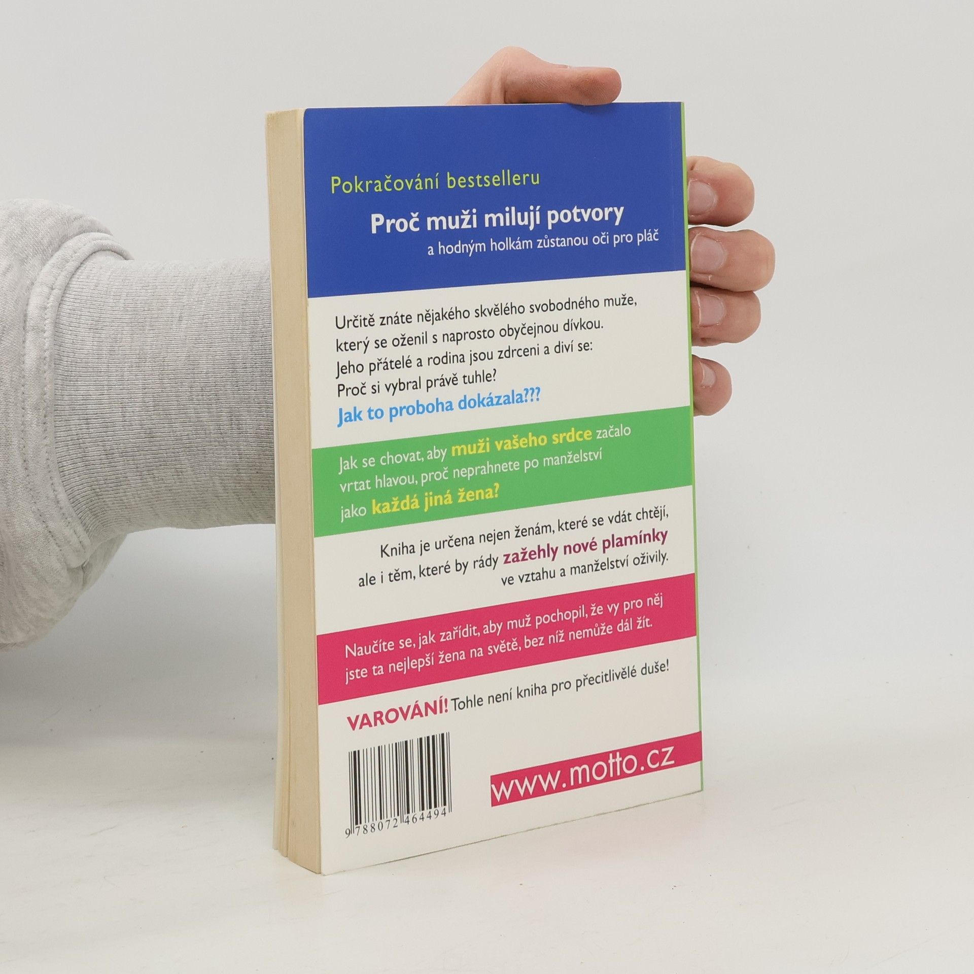 Jak se chovat, aby muži vašeho srdce začalo vrtat hlavou, proč neprahnete po manželství jako každá jiná žena? Jak zařídit, aby pochopil, že vy pro něj jste ta nejlepší žena na světě, bez níž nemůže žít dál. Pokračování bestselleru Proč muži milují potvory a hodným holkám zůstanou oči pro pláč.