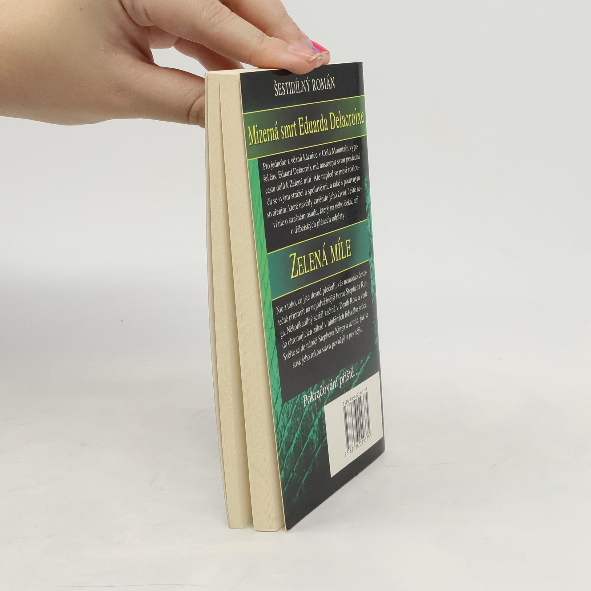 Pro jednoho z vězňů káznice v Cold Mountain vypršel čas. Eduard Delacroix má nastoupit svou poslední cestu dolů k Zelené míli. Ale napřed se musí rozloučit se svými strážci a spoluvězni, a také s podivným stvořením, které navždy změnilo jeho život. Ještě neví nic o strašném osudu, který na něho čeká, ani o ďábelských plánech odplaty. Nic z toho, co jste dosud přečetli, vás nemohlo dostatečně připravit na nejdovážnější horor Stephena Kinga. Několikadílný seriál začíná v Death Row a vede do ohromujících záhad v hlubinách lidského srdce. Svěřte se do náručí Stephena Kinga a ucítíte, jak se stisk jeho rukou stává pevnější a pevnější.