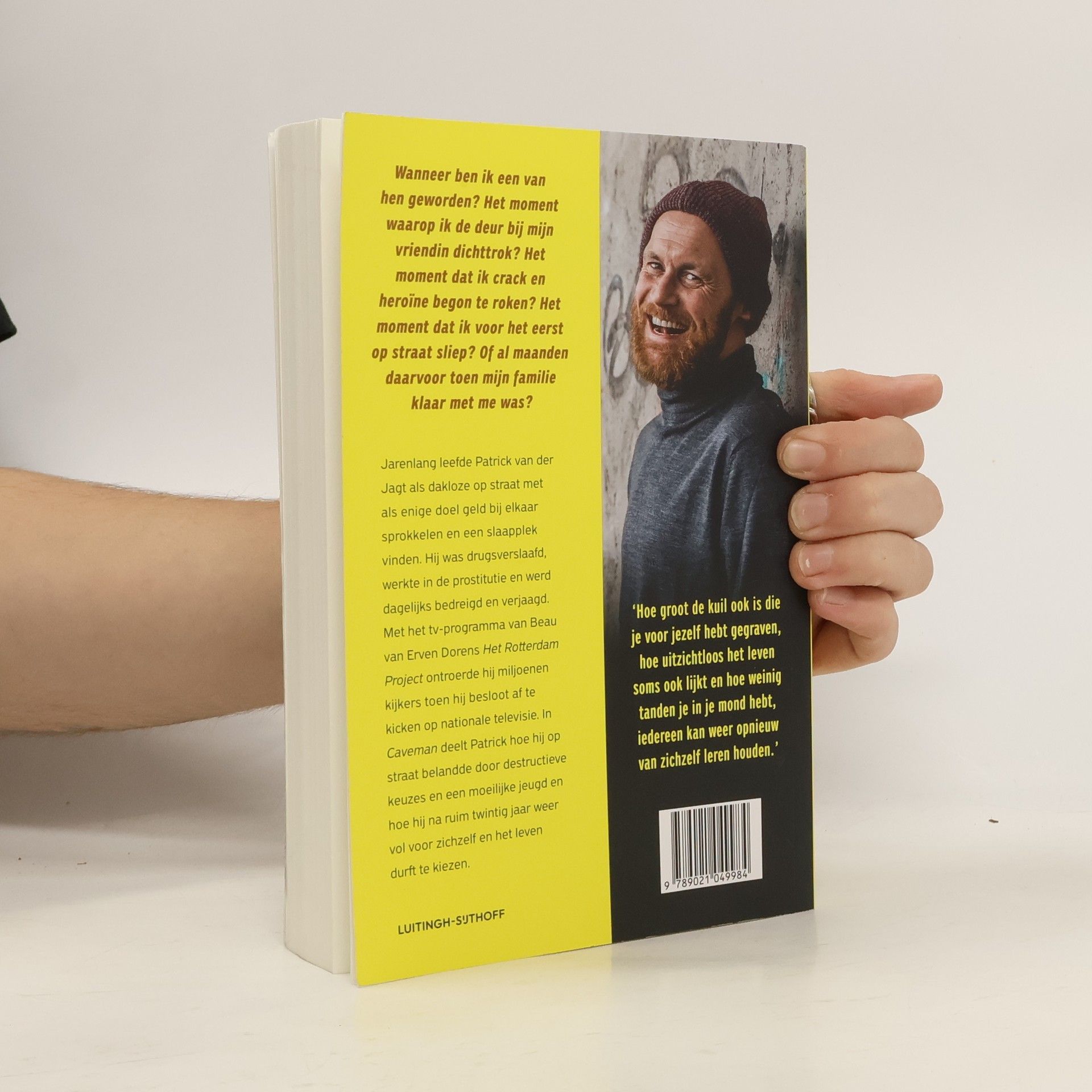 In Caveman vertelt Patrick van der Jagt hoe hij thuiskomt na twintig jaar op straat te hebben gewoond. Jarenlang leefde hij zonder dak boven zijn hoofd met als enige doel geld bij elkaar sprokkelen en een slaapplek vinden. Hij was verslaafd aan cocaïne en heroïne en werkte in de prostitutie.Tijdens Het Rotterdam Project in 2018 ontroerde Patrick miljoenen kijkers. Hij kickte af op nationale televisie, werd verliefd op de eindredactrice van het televisieprogramma, kreeg samen met haar een zoontje en is nu een succesvolle fotograaf en motivatiespreker. Dit is verhaal over (zelf)liefde, veerkracht en het keiharde leven op straat.'Hoe groot de kuil ook is die je voor jezelf hebt gegraven, hoe uitzichtloos het leven soms ook lijkt en hoe weinig tanden je ook in je mond hebt, iedereen kan weer opnieuw van zichzelf leren houden.' Patrick van der Jagt