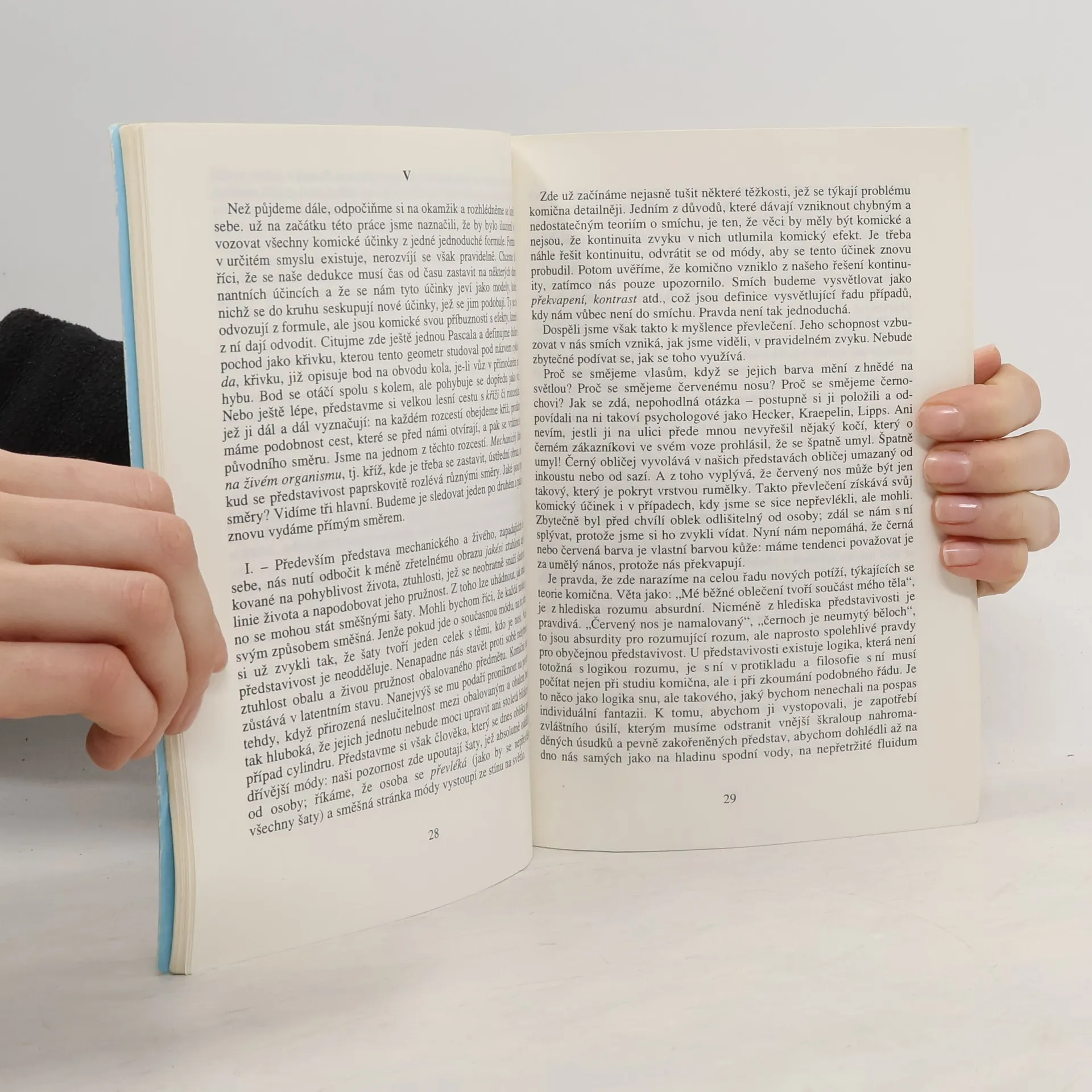 Bergsonova esej Smích zkoumá zdroj a smysl smíchu, přičemž zdůrazňuje jeho významnou společenskou roli. Kriticky se zaměřuje na komické, které odhaluje mechanické aspekty lidského myšlení a chování. Autor se projevuje jako erudovaný znalec literatury a vtipný pozorovatel každodenního života. Obřadná stránka společenského života skrývá latentní komično, které čeká na příležitost k projevu. Obřady jsou pro společnost tím, co je převlek pro jednotlivce: musíme je brát vážně, protože se s nimi ztotožňujeme. Jakmile se však od nich odpojíme, ztrácejí svou vážnost a účastníci se jeví jako loutky. Jejich pohyb je řízen nehybností obřadních formulí, což vytváří automatismus. Tento automatismus se projevuje i u úředníků, kteří jednají jako stroje, aplikující příkazy bez uvědomění si jejich absurdity. Příkladem je incident blízko Dieppe, kdy se parník potopil. Cestující, kteří se snažili zachránit, byli nejprve dotazováni celníky, zda mají něco k proclení. Podobně absurdní situace nastala, když poslanec po zločinu ve vlaku interpeloval ministra s upozorněním na porušení úředních předpisů vrahem, který vyskočil z vlaku. Tato komická situace ilustruje, jak se vážnost a mechanické myšlení mohou stát zdrojem smíchu.