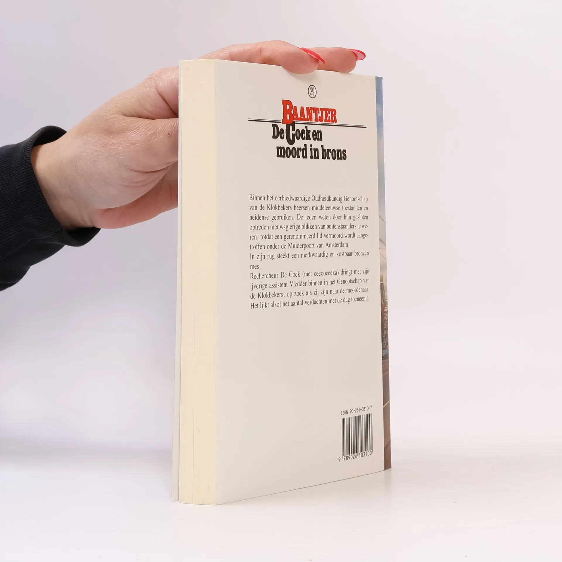 Wanneer een lid van het Oudheidkundig Genootschap van de Klokbekers vermoord wordt gevonden, worden De Cock en Vledder met het onderzoek belast.Binnen het eerbiedwaardige Oudheidkundig Genootschap van de Klokbekers heersen middeleeuwse toestanden en heidense gebruiken. De leden weten door hun gesloten optreden nieuwsgierige blikken van buitenstaanders te weren, totdat een gerenommeerd lid vermoord wordt aangetroffen onder de Muiderpoort van Amsterdam. In zijn rug steekt een merkwaardig en kostbaar bronzen mes. Rechercheur De Cock dringt met zijn ijverige assistent Vledder binnen in het Genootschap van de Klokbekers, op zoek als zij zijn naar de moordenaar. Het lijkt alsof het aantal verdachten met de dag toeneemt.