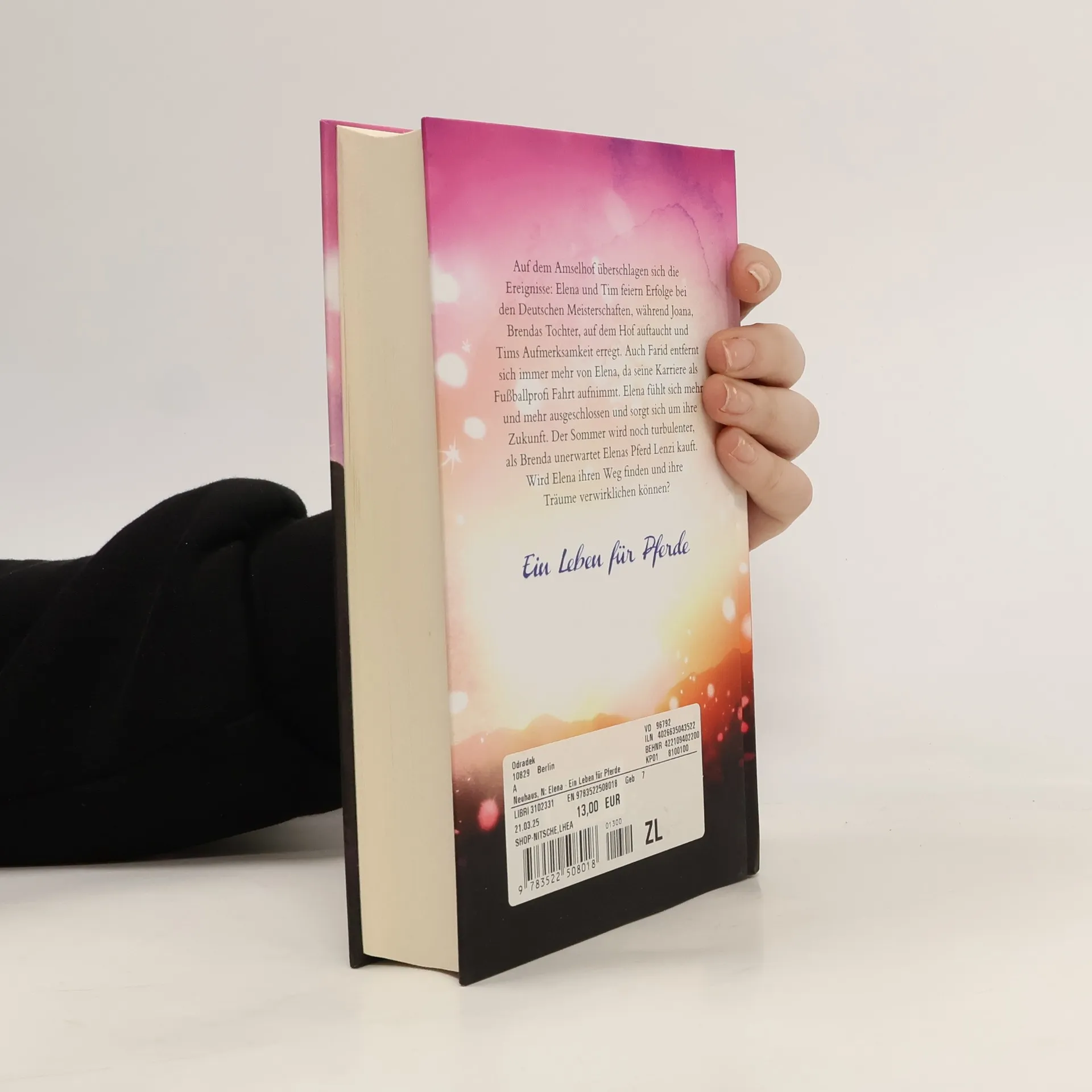 Auf dem Amselhof überschlagen sich die Ereignisse: Elena und Tim feiern Erfolge bei den Deutschen Meisterschaften, während Joana, Brendas Tochter, auf dem Hof auftaucht und Tims Aufmerksamkeit erregt. Auch Farid entfernt sich immer mehr von Elena, da seine Karriere als Fußball-Profi Fahrt aufnimmt. Elena fühlt sich mehr und mehr ausgeschlossen und sorgt sich um ihre Zukunft. Der Sommer wird noch turbulenter , als Brenda unerwartet Elenas Pferd Lenzi kauft. Wird Elena ihren Weg finden und ihre Träume verwirklichen können? Von den Fans sehnsüchtig erwartet: der neue Band der Bestseller-Serie. In dieser Serie bereits erschienen: Elena – Gegen alle Hindernisse (1) Elena – Sommer der Entscheidung (2) Elena – Das Geheimnis der Oaktree-Farm (3) Elena – Schatten über dem Turnier (4) Elena – Ihr größter Sieg (5) Elena – Eine falsche Fährte (6) Elena – In letzter Sekunde (7)