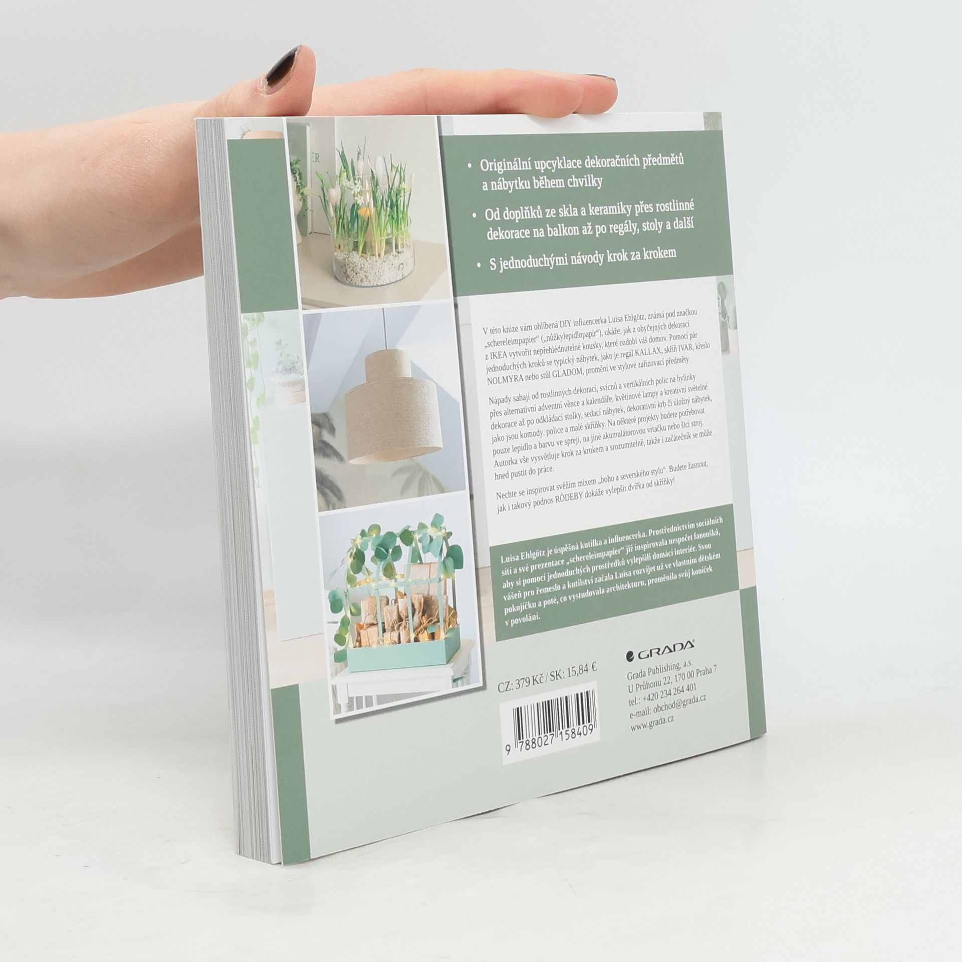 V této knize vám oblíbená DIY influencerka Luisa Ehlgötz, známá pod značkou „schereleimpapier“ („nůžkylepidlopapír“), ukáže, jak z obyčejných dekorací z IKEA vytvořit nepřehlédnutelné kousky, které ozdobí váš domov. Pomocí pár jednoduchých kroků se typický nábytek, jako je regál KALLAX, skříň IVAR, křeslo NOLMYRA nebo stůl GLADOM, promění ve stylové zařizovací předměty. Nápady sahají od rostlinných dekorací, svícnů a vertikálních polic na bylinky přes alternativní adventní věnce a kalendáře, květinové lampy a kreativní světelné dekorace až po odkládací stolky, sedací nábytek, dekorativní krb či úložný nábytek, jako jsou komody, police a malé skříňky. Na některé projekty budete potřebovat pouze lepidlo a barvu ve spreji, na jiné akumulátorovou vrtačku nebo šicí stroj. Autorka vše vysvětluje krok za krokem a srozumitelně, takže i začátečník se může hned pustit do práce.Nechte se inspirovat svěžím mixem „boho a severského stylu“. Budete žasnout, jak i takový podnos RÖDEBY dokáže vylepšit dvířka od skříňky!