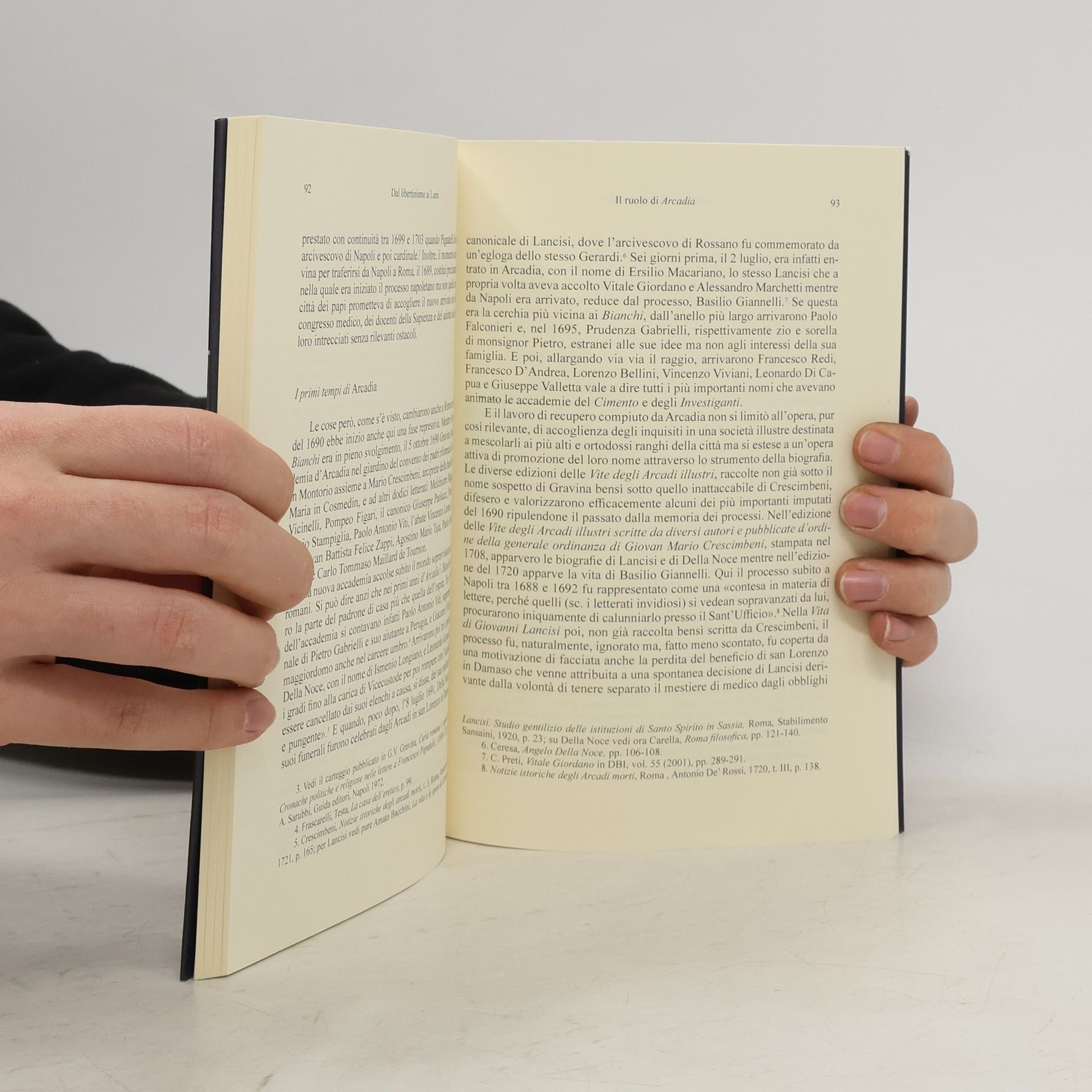 I sommari conservati presso l’Archivio del Sant’Ufficio romano permettono di ricostruire la vasta trama di idee e relazioni sviluppatasi a Roma tra docenti della Sapienza, membri del Congresso medico, nobili e bibliotecari negli anni Ottanta del secolo XVII. L’analisi della documentazione processuale rivela che, parallelamente al processo napoletano contro gli “ateisti”, si svolsero a Roma due processi che coinvolsero persone ben più rilevanti e numerose di quelle implicate a Napoli, giungendo a una conclusione assai più drammatica e cruenta. Antonio Oliva, Pietro Gabrielli, Filippo Alfonsi, Paolo Boselli, Sulpizio Antonio Mazzuti, Giovanni Maria Lancisi, Gian Vincenzo Gravina e, dietro di loro, le famiglie dei Colonna e dei Mancini, furono i nomi più significativi coinvolti in una vicenda che, sommata a quella napoletana, mise in allarme le congregazioni romane dell’Indice e del Sant’Ufficio.Emerge così una vicenda che segnò profondamente l’Italia del tempo e che viene qui ricostruita partendo dalle principali esperienze del “complesso culturale” bianco-luminoso e proseguendo poi con i principali percorsi intrapresi dai sopravvissuti ai processi fino alle riforme dell’istruzione pubblica promosse a Roma e a Torino.