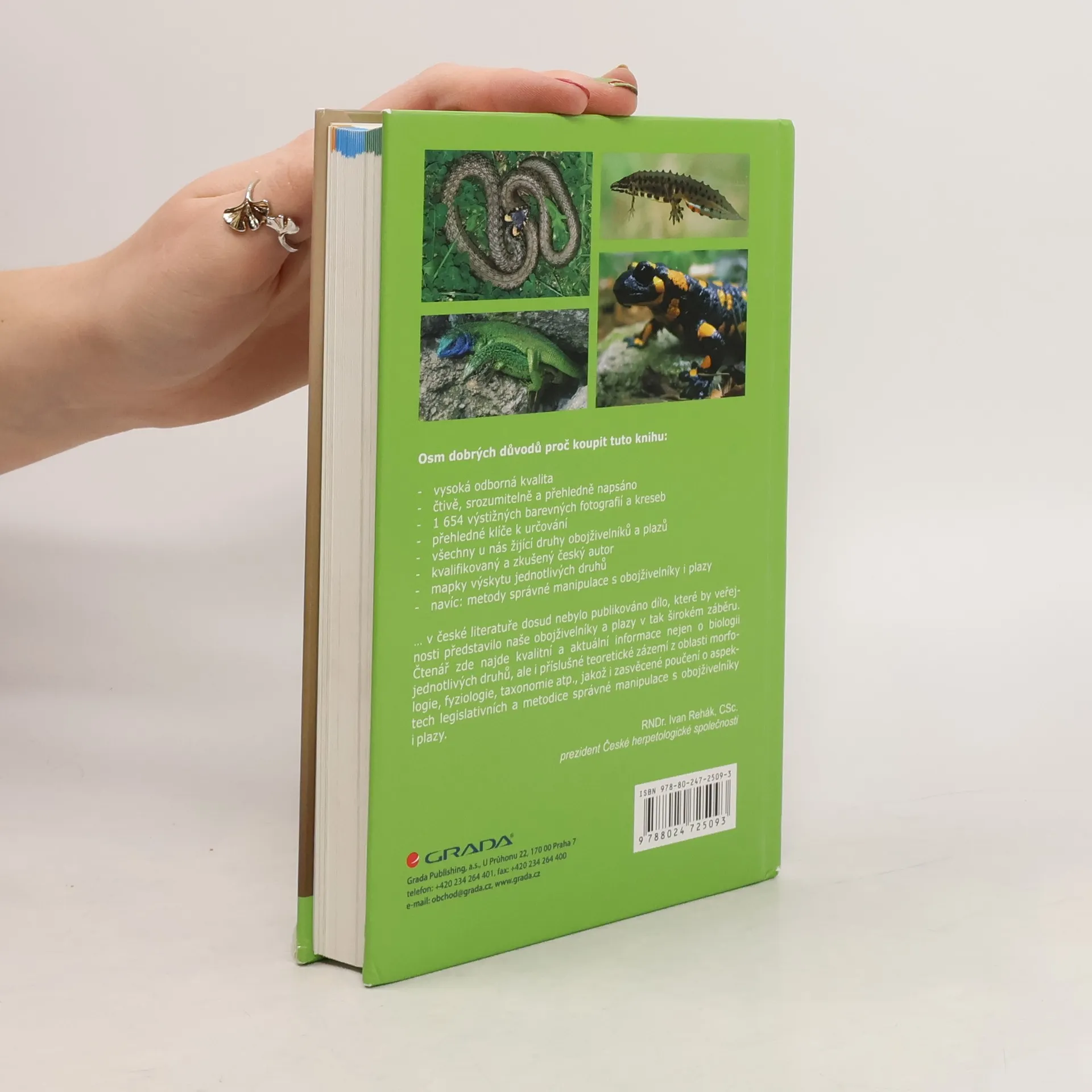 Komplexní publikace českého autora, jediná svého druhu na našem trhu, přináší encyklopedický přehled a určovací klíče všech druhů obojživelníků a plazů, kteří žijí na území České republiky. U každého druhu je podrobný popis, fotografie, určovací znaky, mapa výskytu i variabilita zbarvení. Autor se zabývá také chováním, nároky jednotlivých druhů na životní prostředí, nedestruktivním způsobem studia těchto živočichů a jejich ochranou. Přehledný text doplňuje 1654 barevných fotografií a kreseb. Kniha je určena všem zájemcům o přírodu, školám a těm, kdo se věnují ochraně přírody.