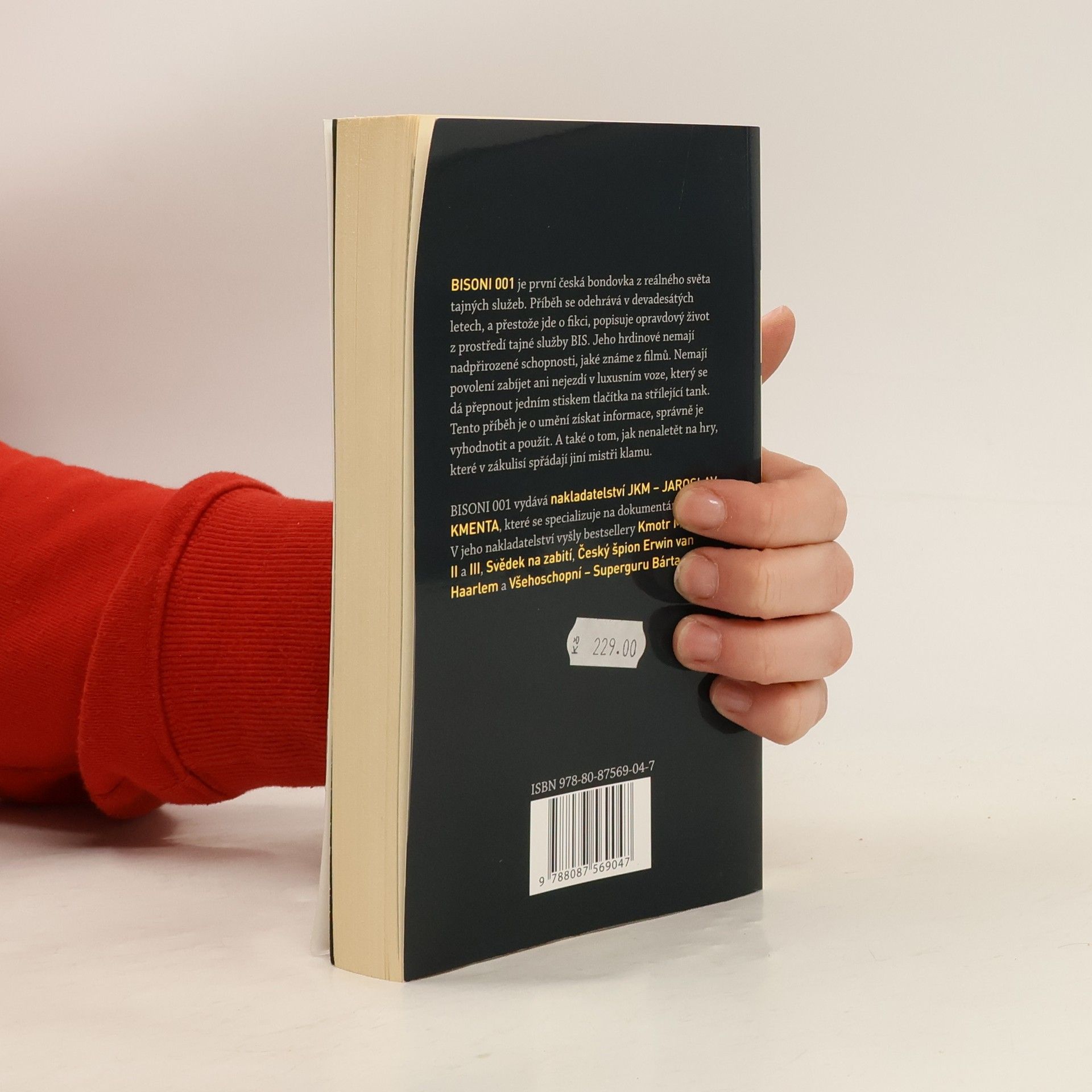 BISONI 001 je první česká bondovka z reálného světa tajných služeb. Příběh se odehrává v devadesátých letech, a přestože jde o fikci, popisuje opravdový život z prostředí tajné služby BIS. Jeho hrdinové nemají nadpřirozené schopnosti, jaké známe z filmů. Nemají povolení zabíjet ani nejezdí v luxusním voze, který se dá přepnout jedním stiskem tlačítka na střílející tank. Tento příběh je o umění získat informace, správně je vyhodnotit a použít. A také o tom, jak nenaletět na hry, které v zákulisí spřádají jiní mistři klamu. BISONI 001 vydává nakladatelství JKM – JAROSLAV KMENTA, které se specializuje na dokumentární prózu. V jeho nakladatelství vyšly bestsellery Kmotr Mrázek I, II a III, Svědek na zabití, Český špion Erwin van Haarlem a Všehoschopní – Superguru Bárta.